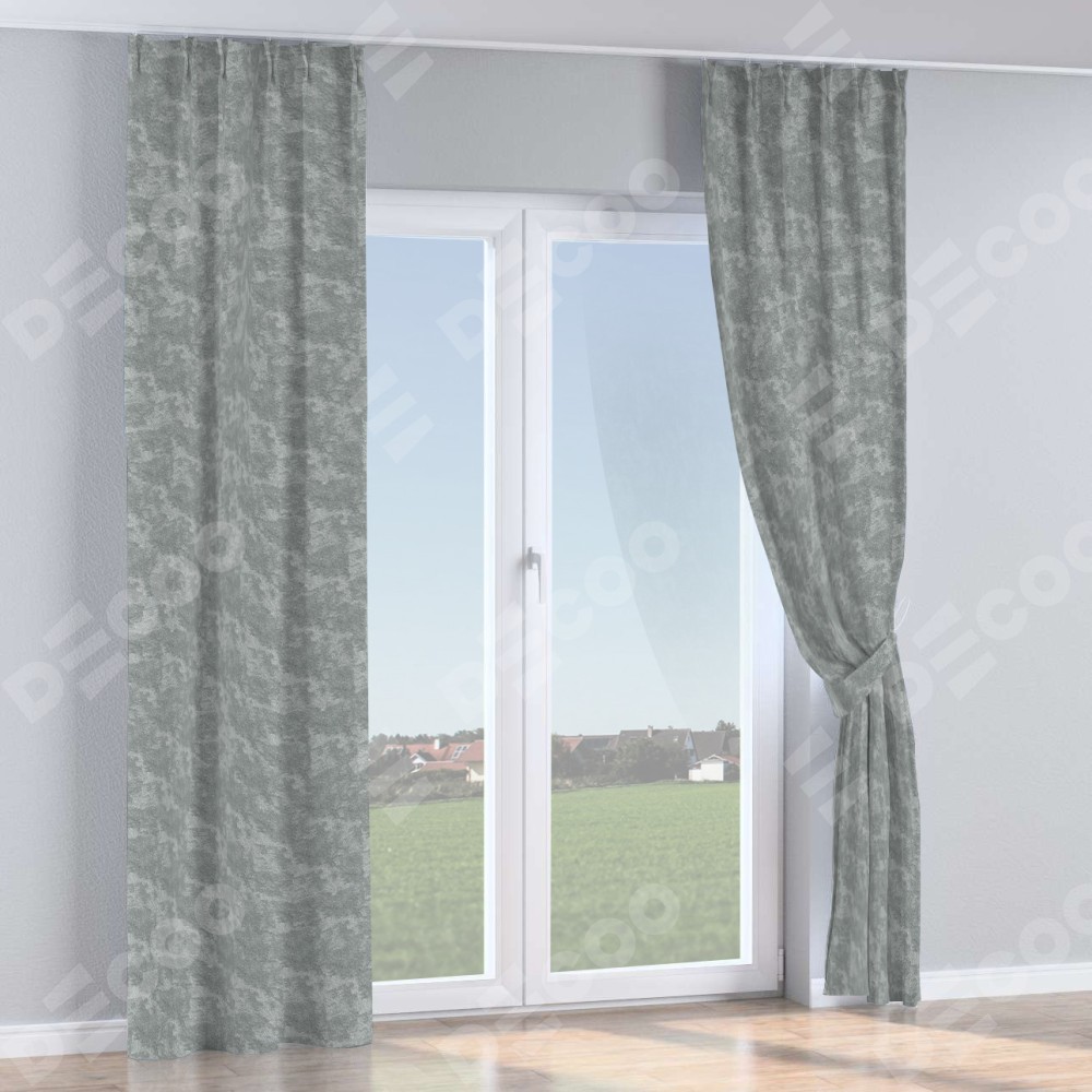 Комплект прямых штор, от производителя «Cortin», пошиты из ткани софт мрамор серый, артикул ткани 93583. С изнаночной стороны в верхней части штор пристрачивается шторная лента с декоративными складками «Кустик». Для создания элегантных складок прямые шторы шьются по стандарту с коэффициентом 1:2 (на 100 см. ширины проёма 200 см. ширины ткани).
