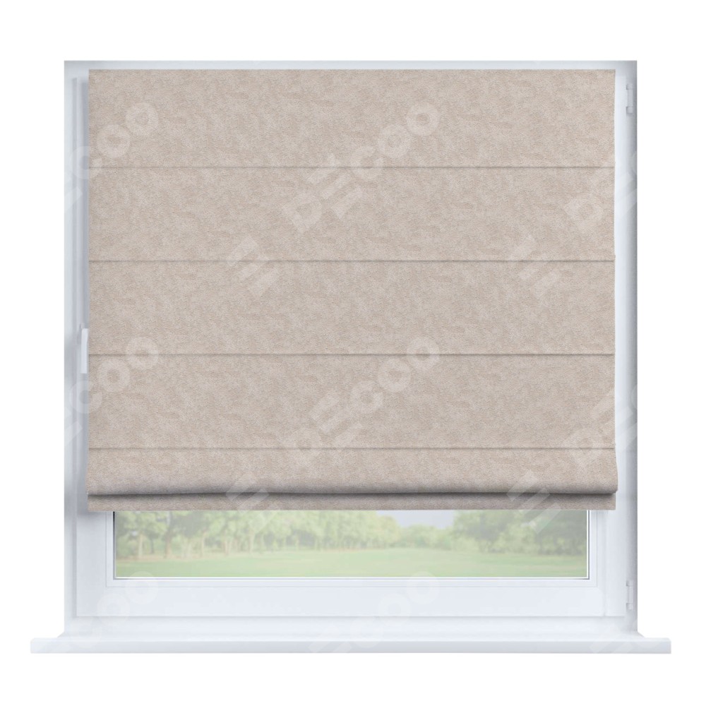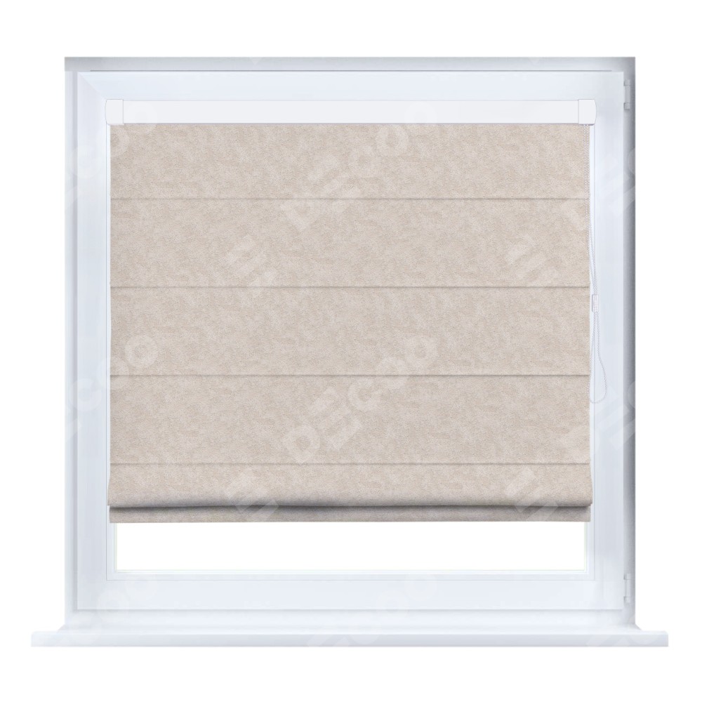 Римская штора производителя «Cortin», устанавливается на створку окна, пошита из ткани софт мрамор шампань, артикул 93575. Штора шьётся по индивидуальным размерам, для данного типа римской шторы возможная ширина от 35 до 150 см., высота до 250 см.