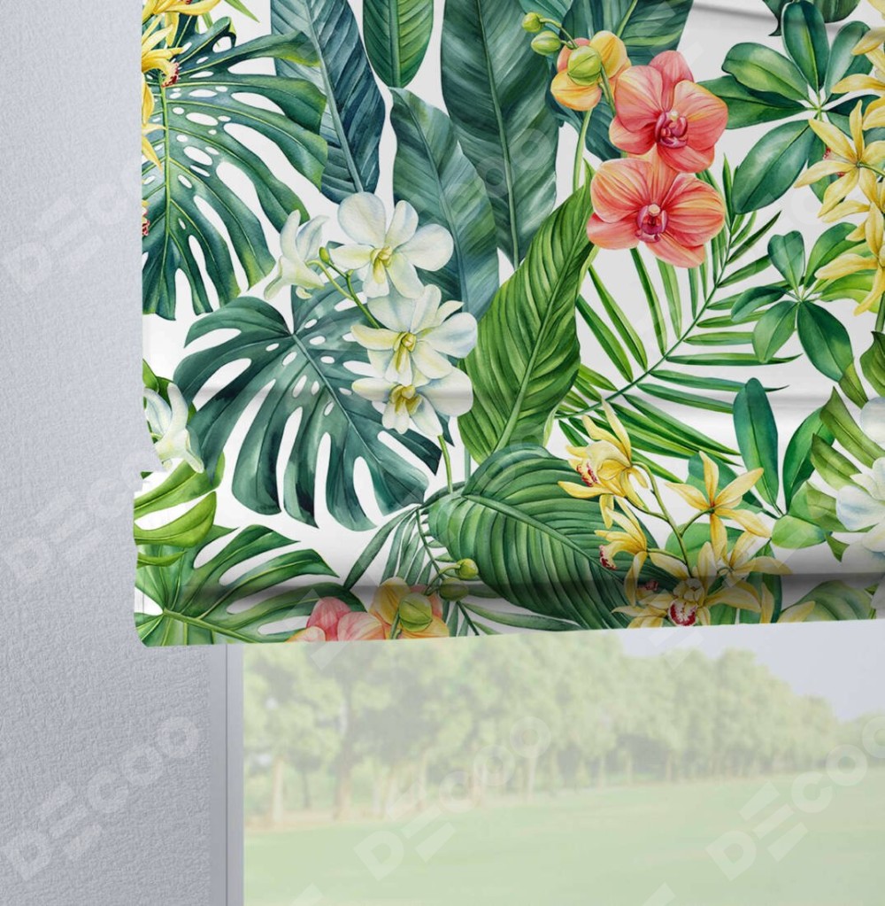 Римская штора производителя «Cortin», используется для проёма, пошита из ткани блэкаут с нанесением сублимационной печати «Орхидеи в тропиках». Данная модель пошита на петлях, комплектуется на выбор круглым карнизом и подходит для монтажа на стену. Римская штора на петлях имеет простую систему регулировки высоты, отличительным преимуществом данной модели является простой способ монтажа. Достаточно повесить ее на трубу и штора готова!