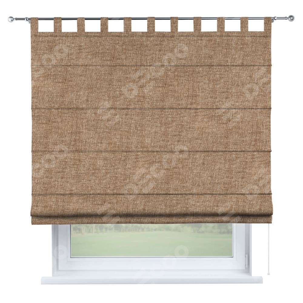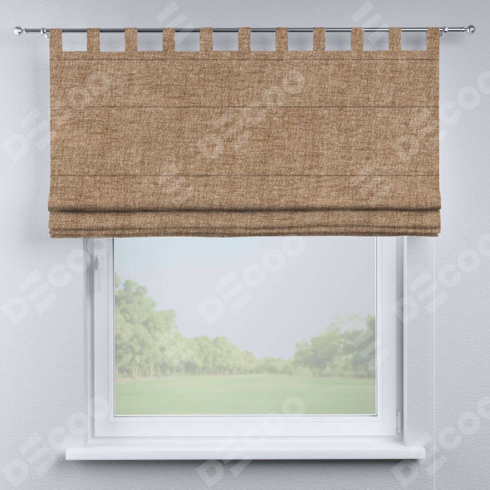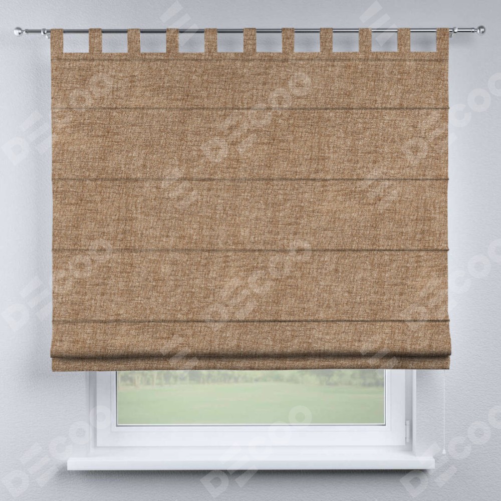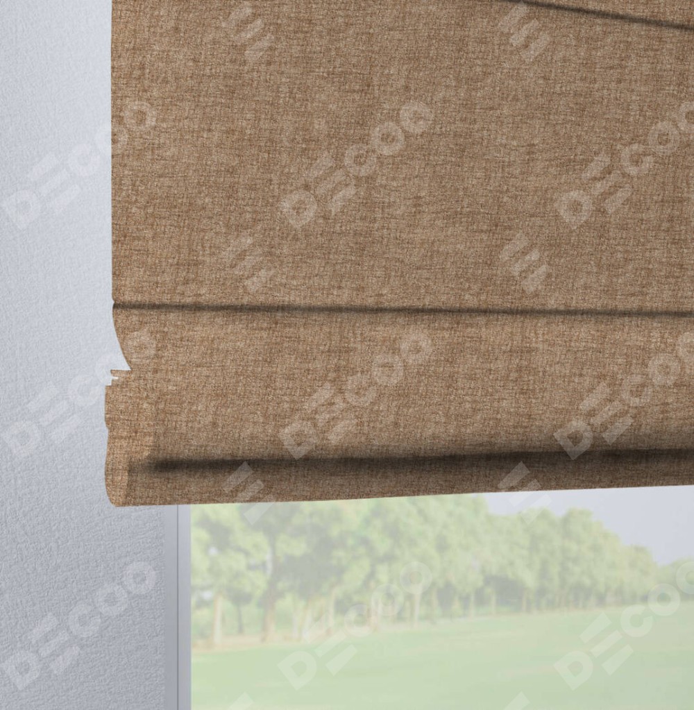 Римская штора «Кортин», рогожка димаут светло-коричневый, на петлях