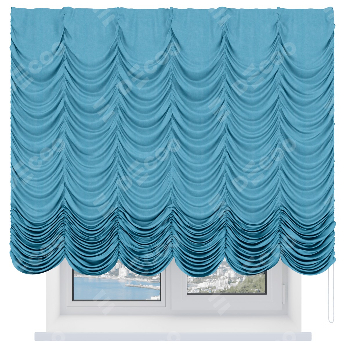 Французская штора производителя «Cortin», используется для проёма, пошита из ткани вельвет ментоловый, артикул ткани 10443. Имеет универсальный механизм и подходит для монтажа: на потолок и на стену.