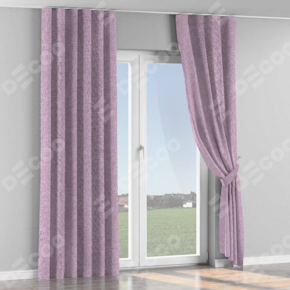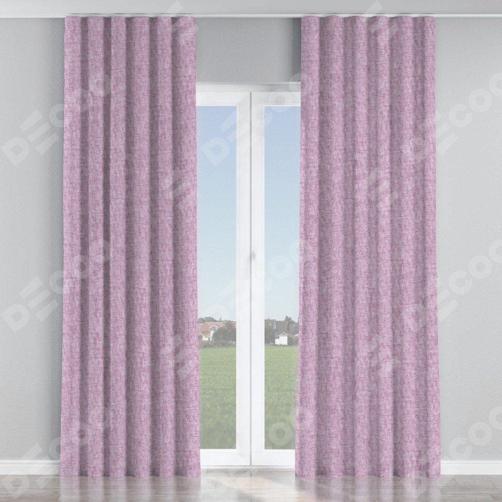 Комплект прямых штор, от производителя «Cortin», пошиты из ткани рогожка димаут розовый, артикул ткани 91031. С изнаночной стороны в верхней части штор пристрачивается шторная лента с декоративными складками «Волна». Для создания элегантных складок прямые шторы шьются по стандарту с коэффициентом 1:2 (на 100 см. ширины проёма 200 см. ширины ткани).