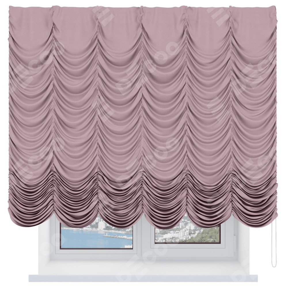 Французская штора производителя «Cortin», используется для проёма, пошита из ткани вельвет розовая пудра, артикул ткани 14132. Имеет универсальный механизм и подходит для монтажа: на потолок и на стену.