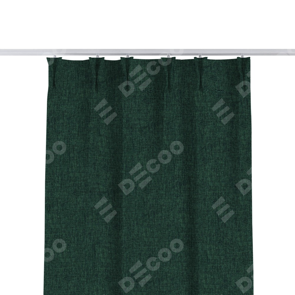 Комплект прямых штор, от производителя «Cortin», пошиты из ткани рогожка димаут тёмно-зелёный, артикул ткани 91022. С изнаночной стороны в верхней части штор пристрачивается шторная лента с декоративными складками «Кустик». Для создания элегантных складок прямые шторы шьются по стандарту с коэффициентом 1:2 (на 100 см. ширины проёма 200 см. ширины ткани).
