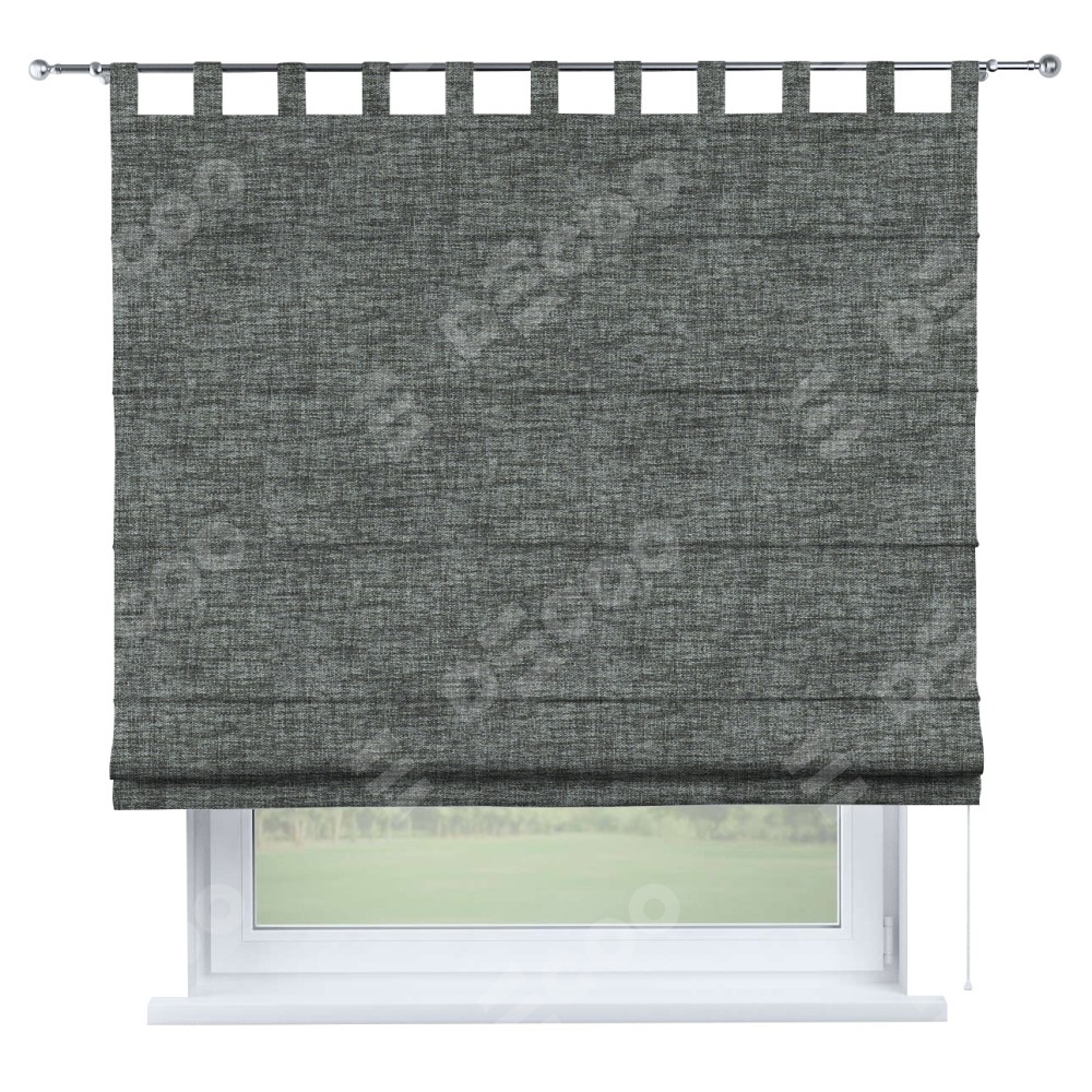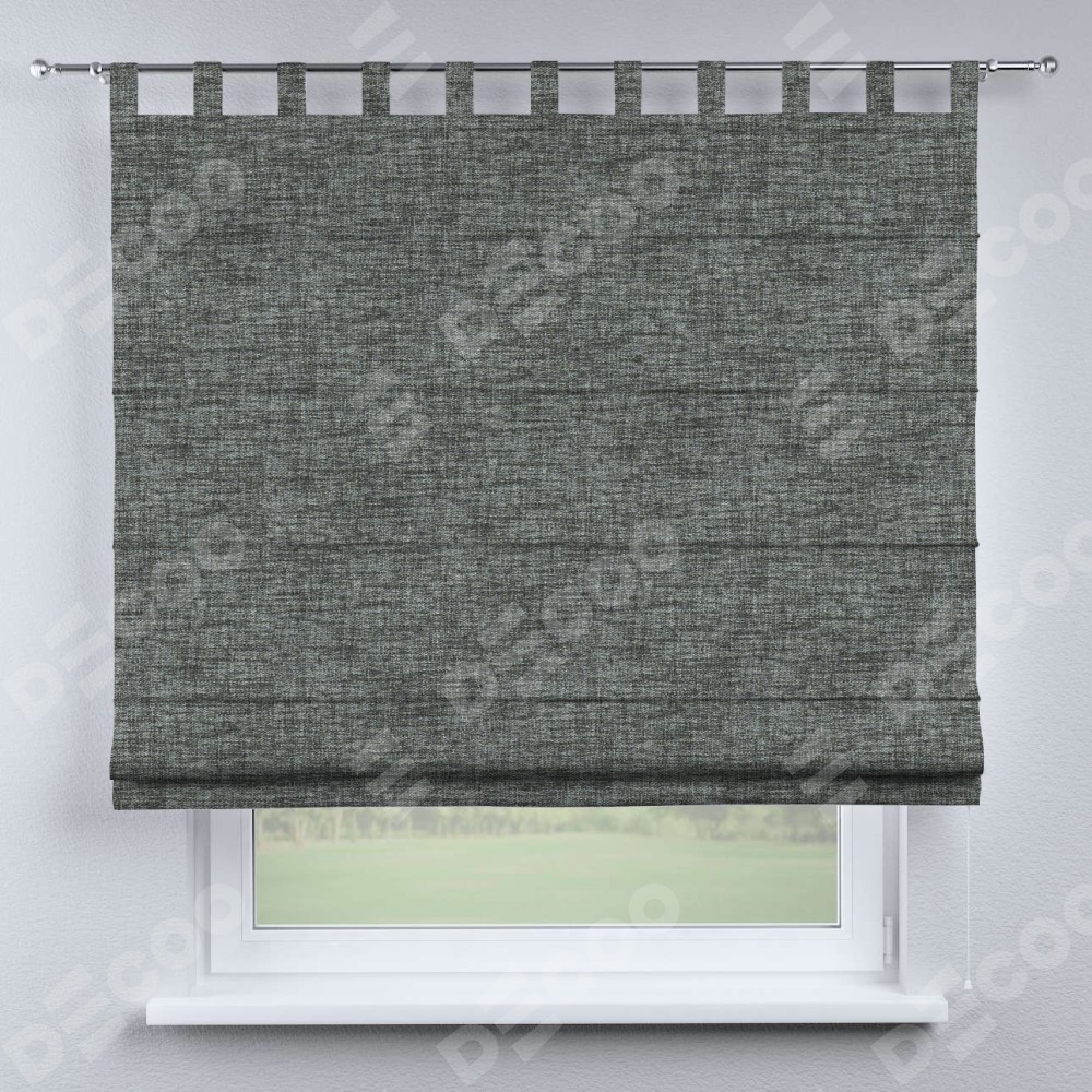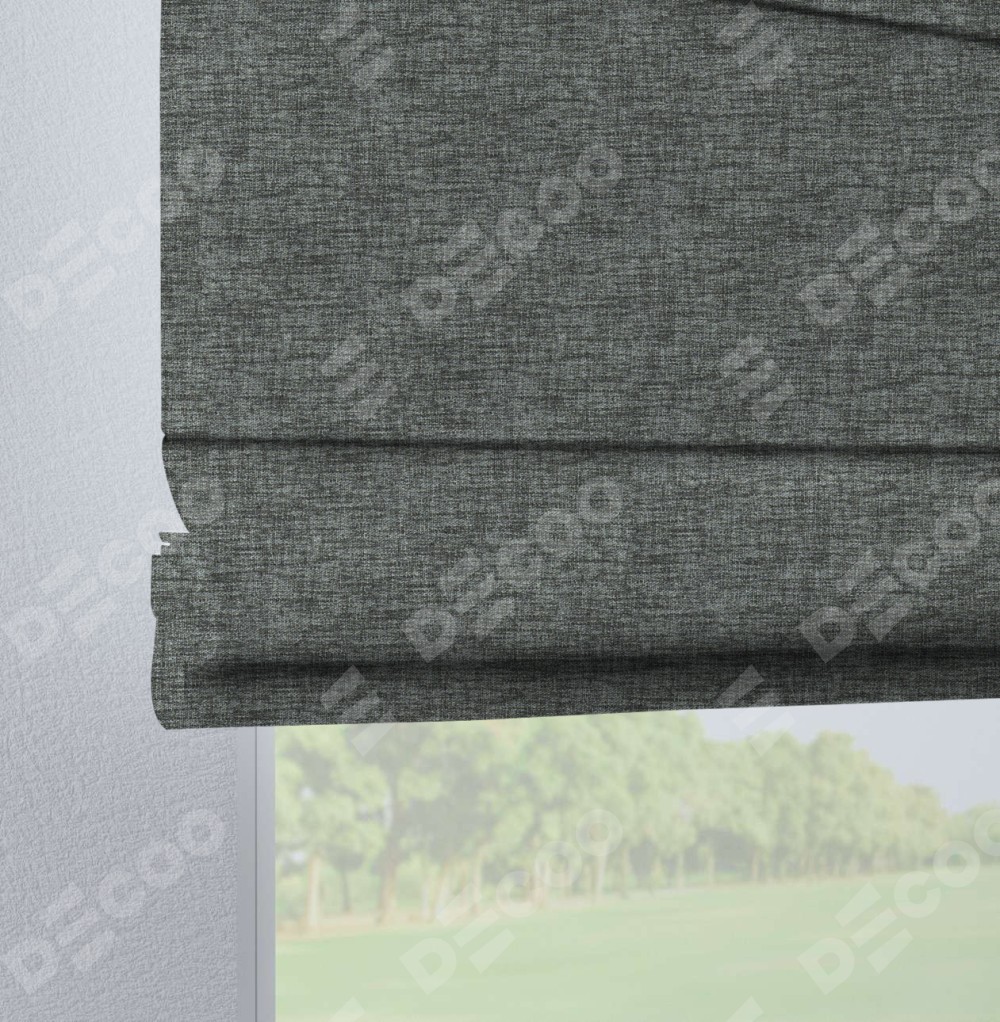 Римская штора «Кортин», рогожка димаут тёмно-серый, на петлях