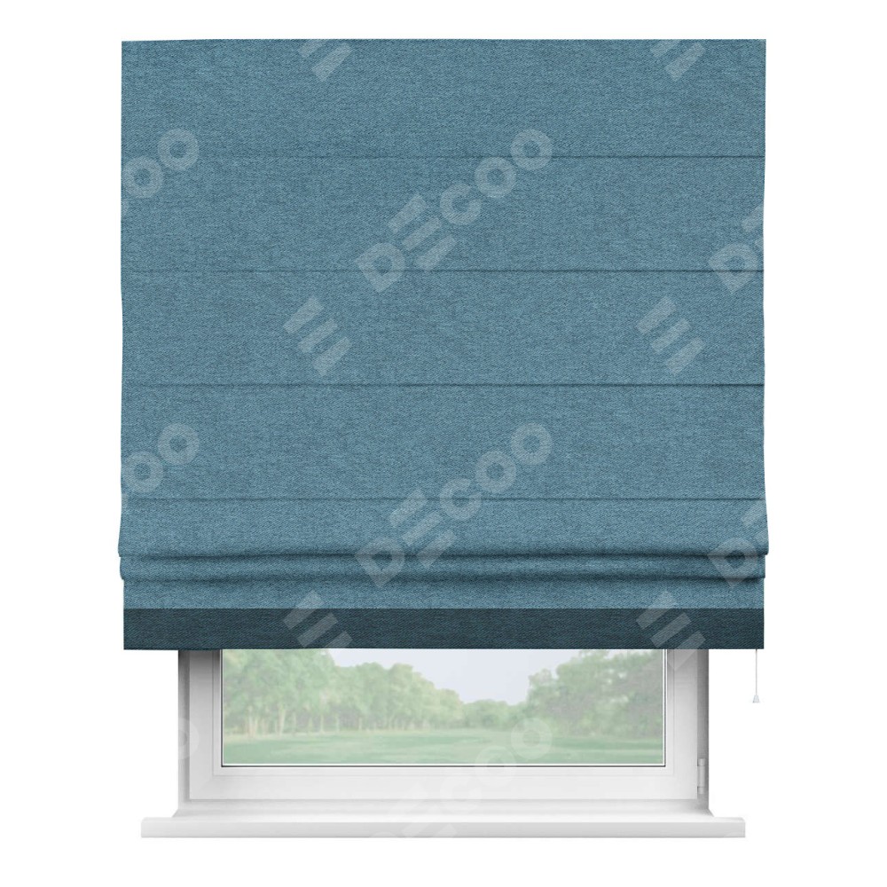 Римская штора «Кортин» с кантом Джестер, для проема, ткань твид блэкаут, светло-синий