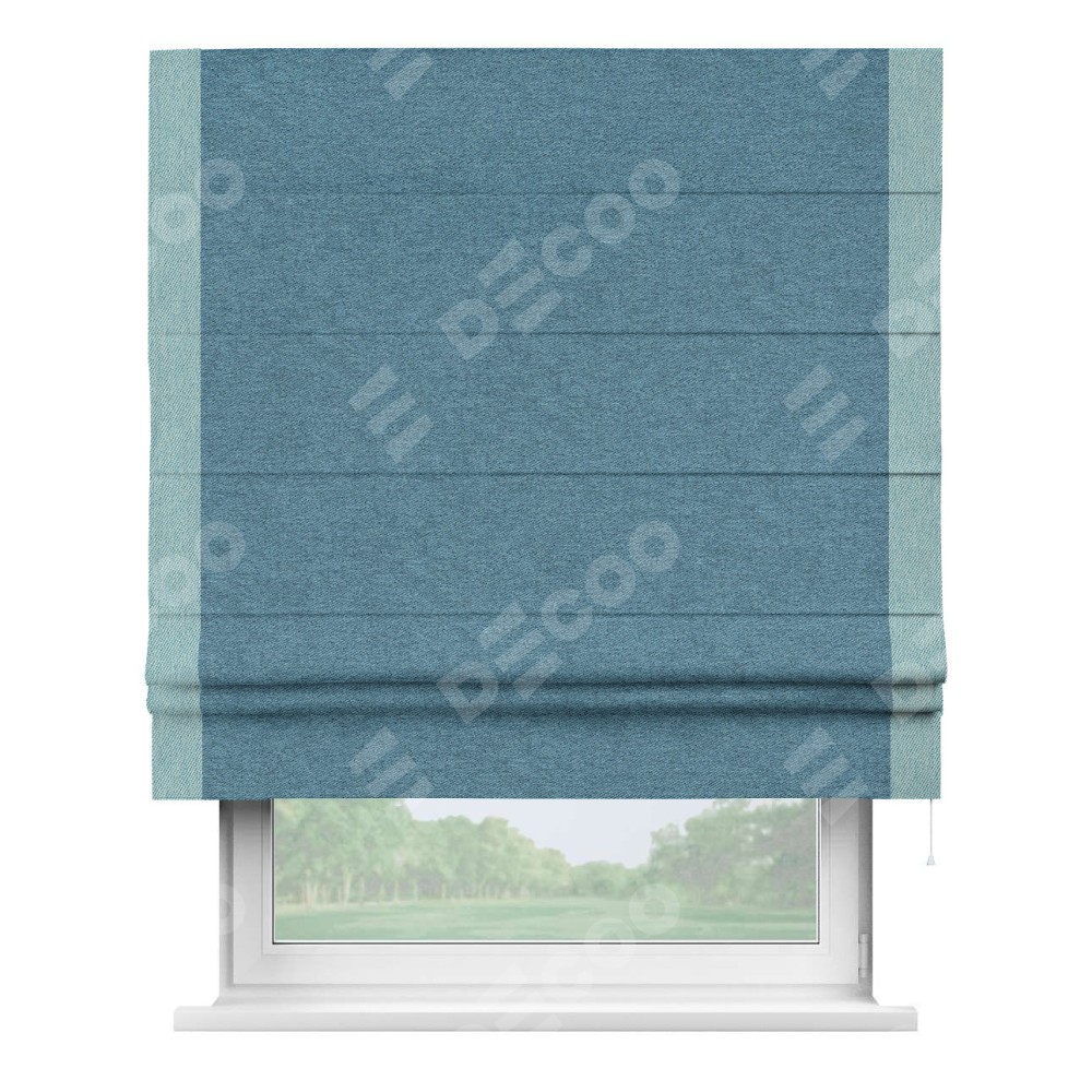 Римская штора «Кортин» с кантом Стрим Дуо, для проема, ткань твид блэкаут, светло-синий