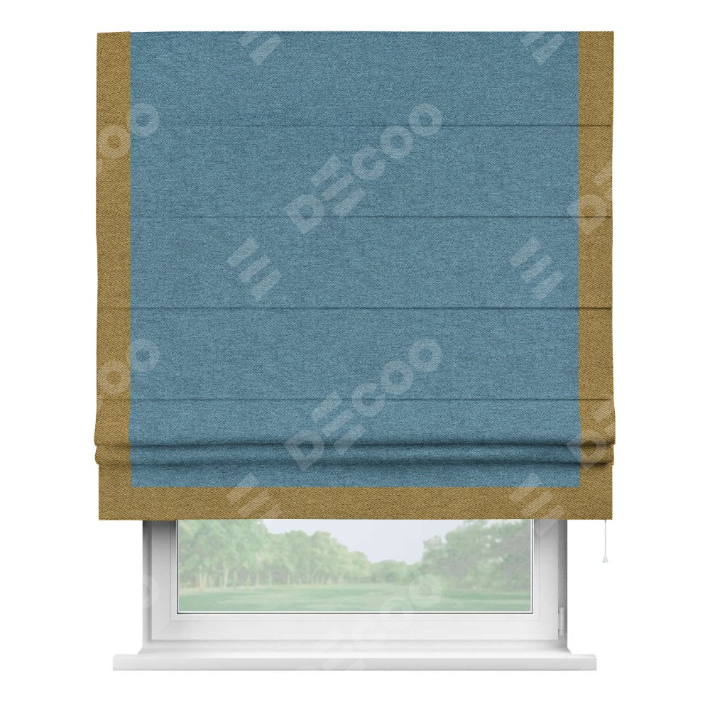 Римская штора с отделкой кантом «Виктория», пошита из ткани твид блэкаут светло-синий, артикул: 90935. представляет собой элегантное решение для оконного оформления. Кант по бокам и снизу шторы добавляет изысканности и аккуратности внешнему виду, подчеркивая линии и форму шторы. Этот элемент декора не только украшает, но и выполняет практическую функцию, защищая края ткани от износа. Кант может быть выполнен в контрастном или гармонирующем цвете, что позволяет добиться различных стилевых эффектов и легко вписать штору в интерьер комнаты.