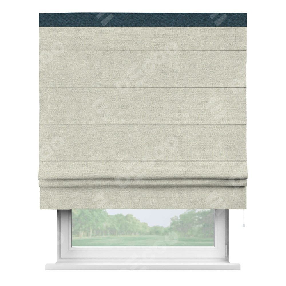 Римская штора пошита из ткани твид блэкаут шампань, артикул: 90929, с отделкой кантом «Кинг» отличается своей необычной особенностью: кант располагается исключительно сверху шторы. Такой дизайн делает акцент на верхней части окна, визуально поднимая потолок и придавая интерьеру более возвышенный и изысканный вид. Отделка кантом на верхней кромке не только украшает штору, но и может служить дополнительной защитой от износа в месте наибольшего контакта с механизмом управления шторой.