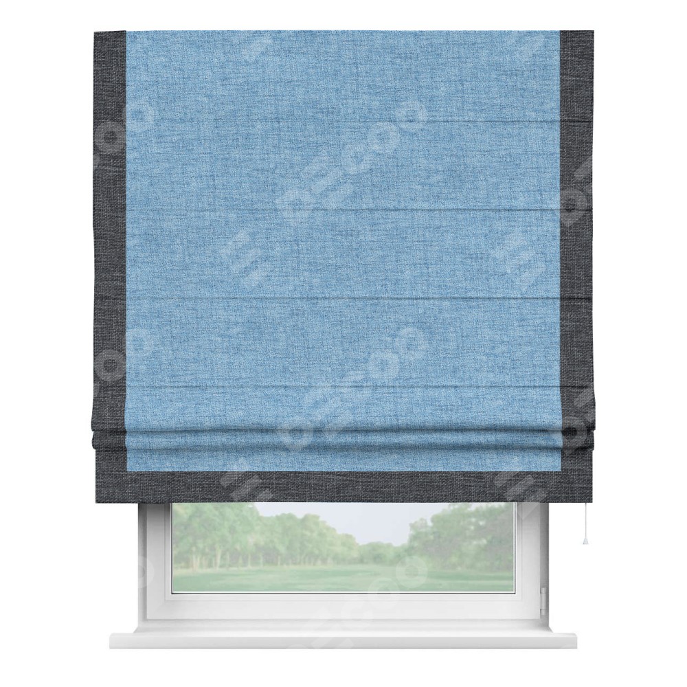 Римская штора «Кортин» для проёма, рогожка димаут голубой, с кантом Виктория