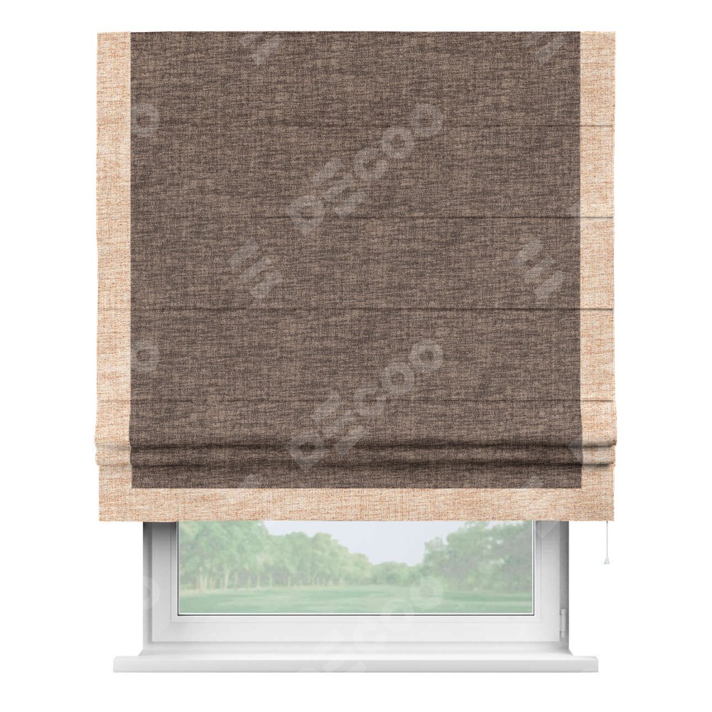 Римская штора «Кортин» для проёма, рогожка димаут коричневый, с кантом Виктория