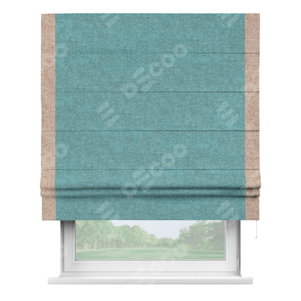 Римская штора «Кортин» с кантом Стрим Дуо, для проема, ткань лён кашемир бирюзовый