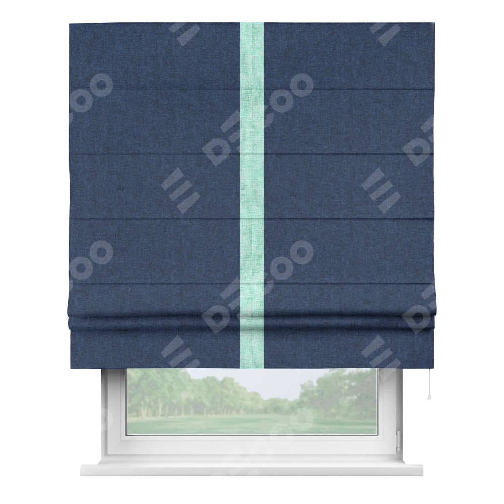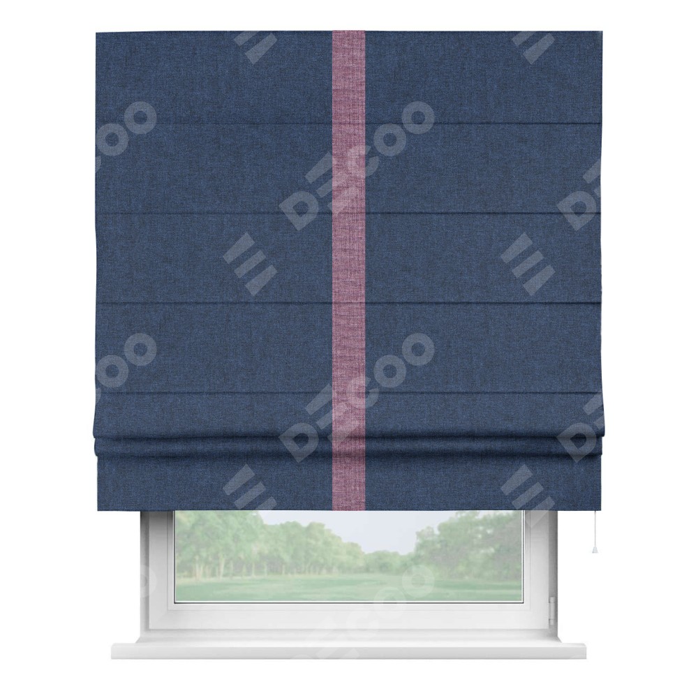 Римская штора «Кортин» для проёма, лён кашемир тёмно-синий, с кантом Хайвэй