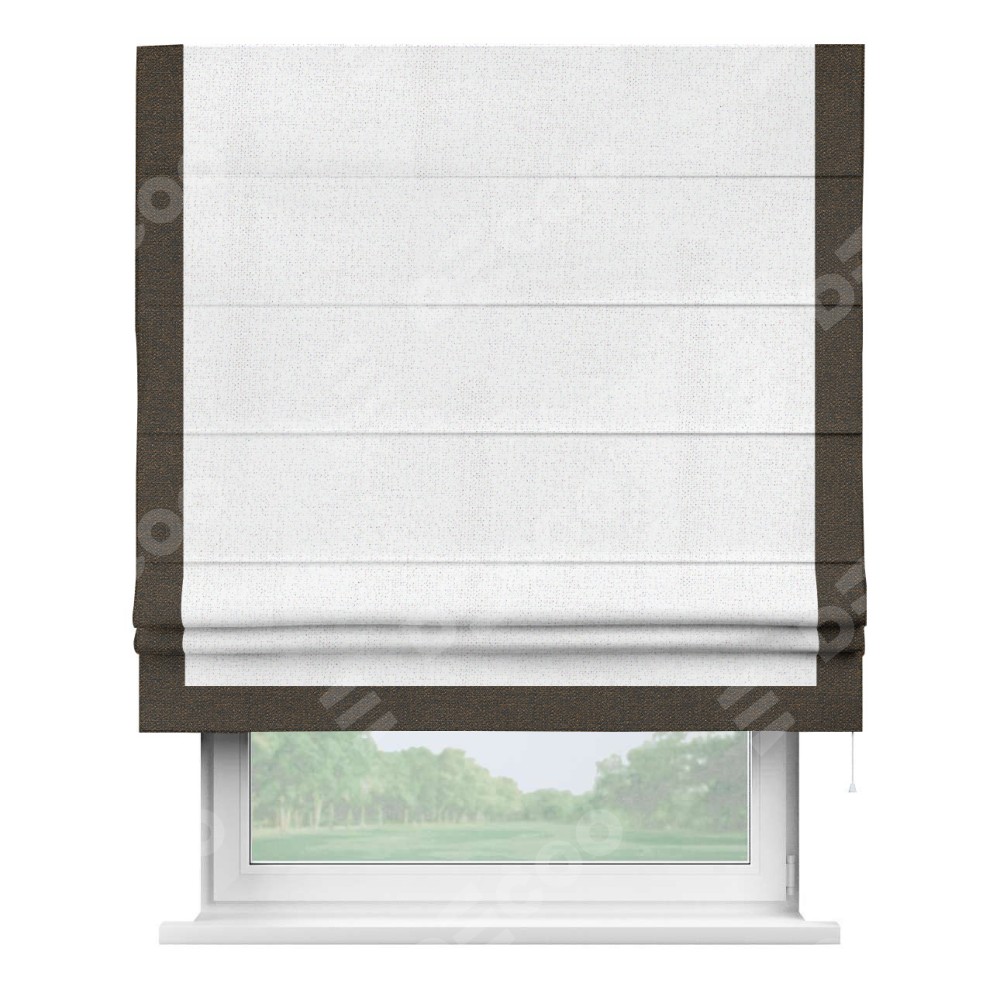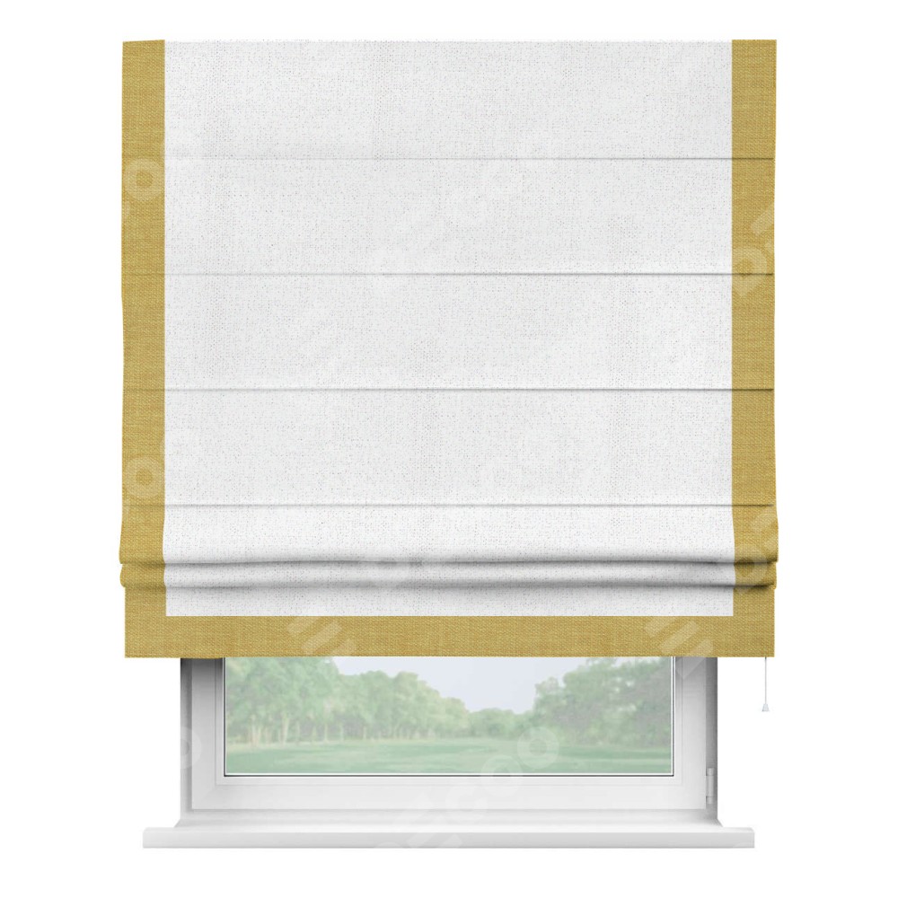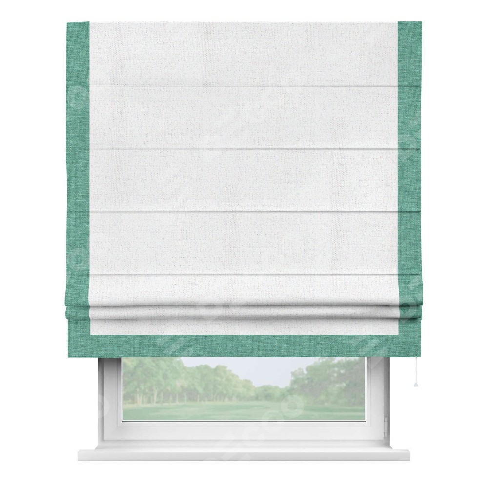 Римская штора с отделкой кантом «Виктория», пошита из ткани лён белоснежный, артикул: 95632. представляет собой элегантное решение для оконного оформления. Кант по бокам и снизу шторы добавляет изысканности и аккуратности внешнему виду, подчеркивая линии и форму шторы. Этот элемент декора не только украшает, но и выполняет практическую функцию, защищая края ткани от износа. Кант может быть выполнен в контрастном или гармонирующем цвете, что позволяет добиться различных стилевых эффектов и легко вписать штору в интерьер комнаты.