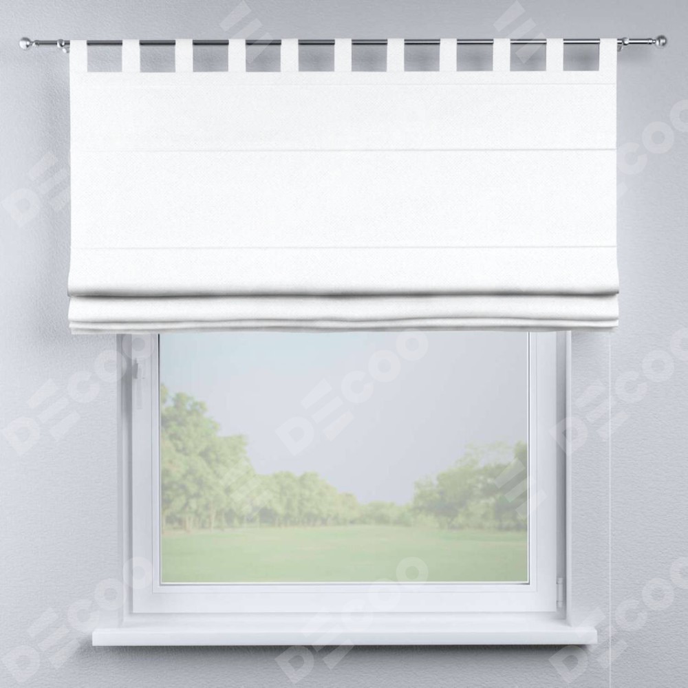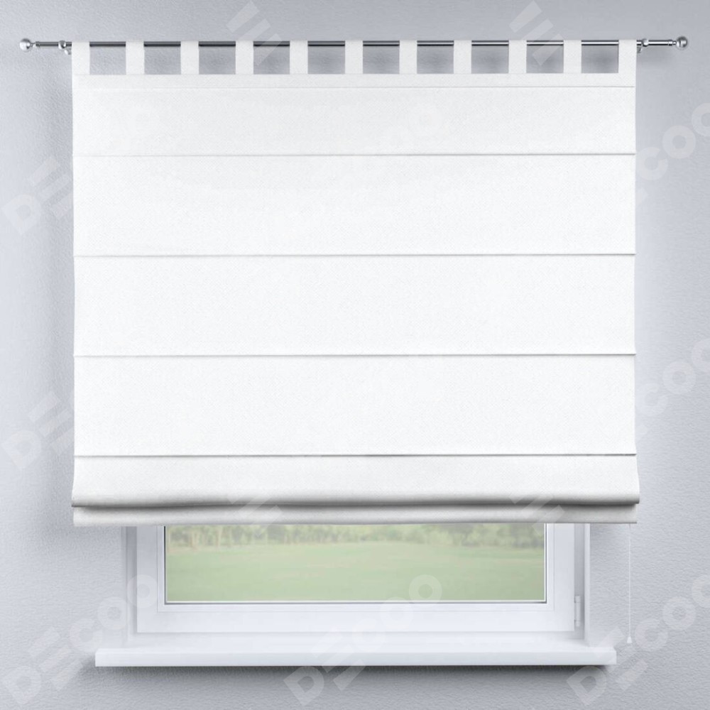 Римская штора производителя «Cortin», используется для проёма, пошита из ткани лён димаут белый, артикул ткани 28. Данная модель пошита на петлях, комплектуется на выбор круглым карнизом и подходит для монтажа на стену. Римская штора на петлях имеет простую систему регулировки высоты, отличительным преимуществом данной модели является простой способ монтажа. Достаточно повесить ее на трубу и штора готова!