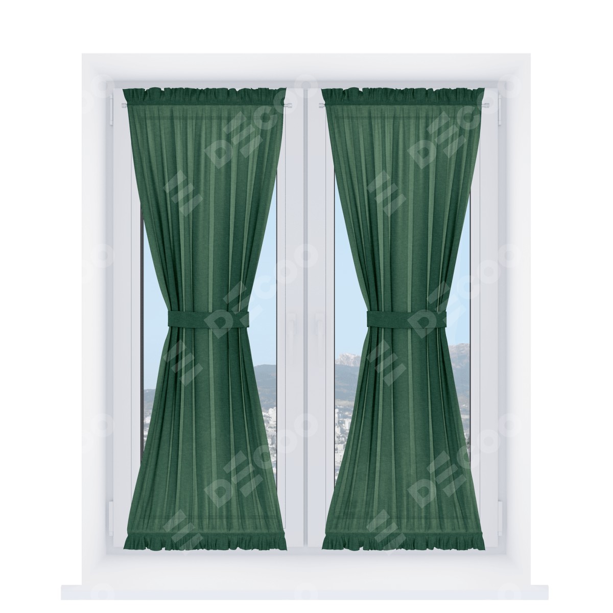 Штора «Песочные часы» производителя «Cortin», используется для створок окон и дверей, пошита из ткани лён серо-зелёный, артикул ткани 63740.