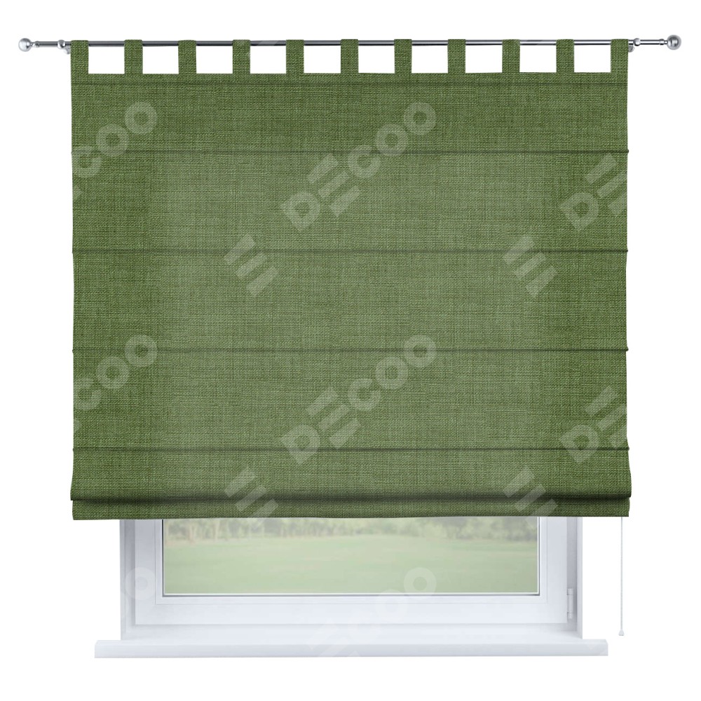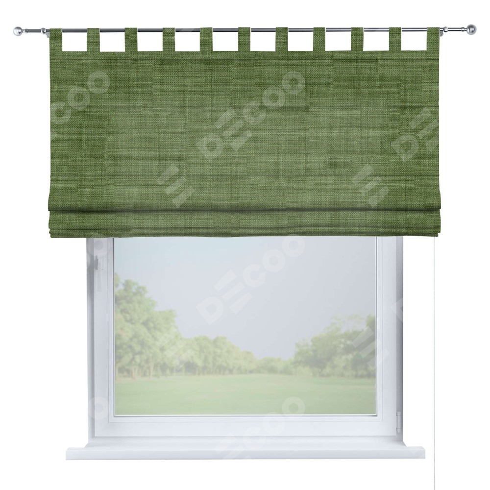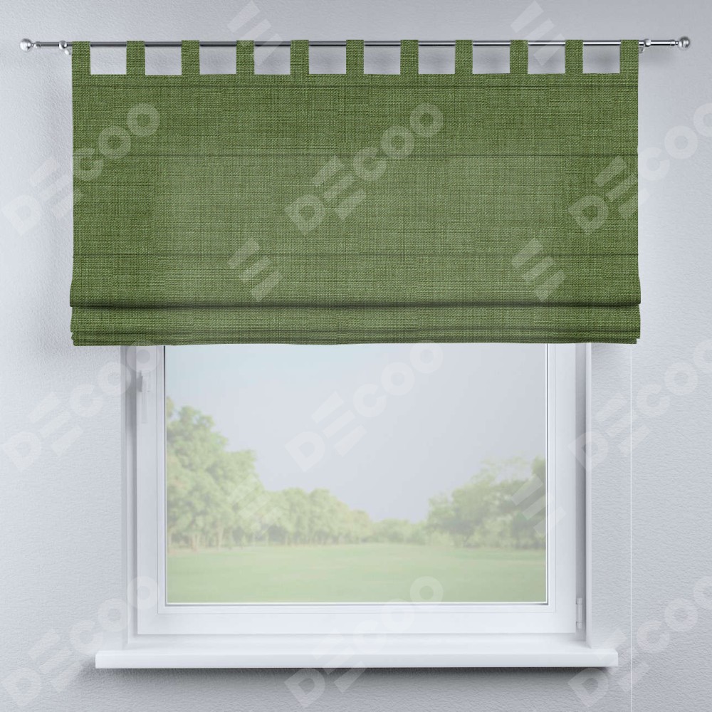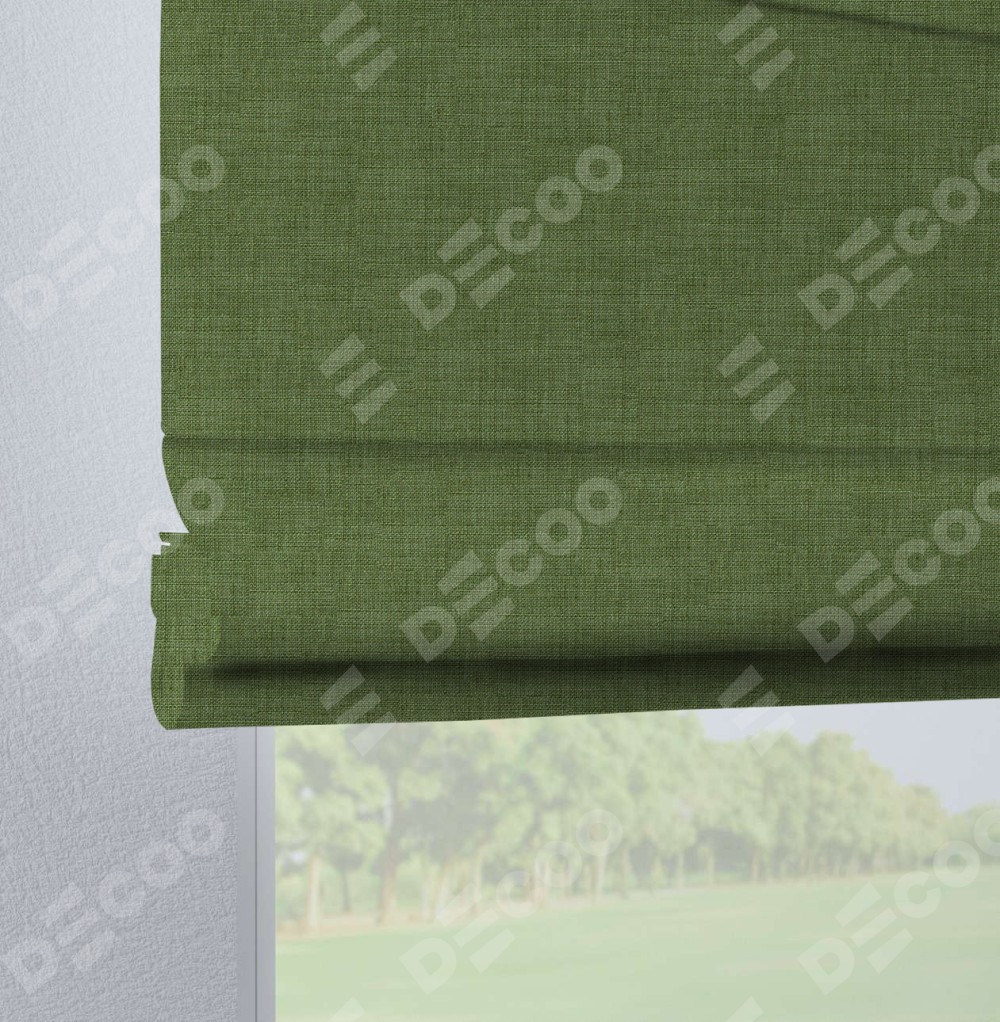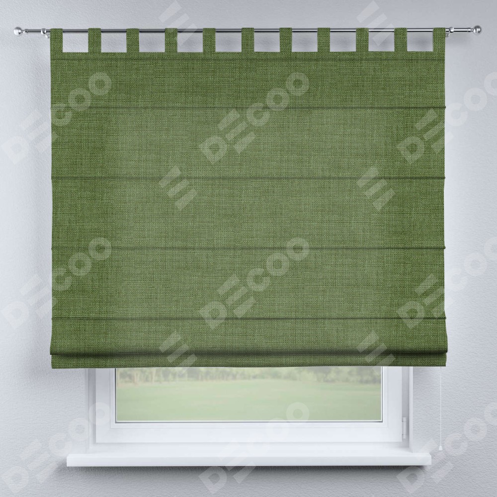 Римская штора производителя «Cortin», используется для проёма, пошита из ткани лён зелёный, артикул ткани 131547. Данная модель пошита на петлях, комплектуется на выбор круглым карнизом и подходит для монтажа на стену. Римская штора на петлях имеет простую систему регулировки высоты, отличительным преимуществом данной модели является простой способ монтажа. Достаточно повесить ее на трубу и штора готова!