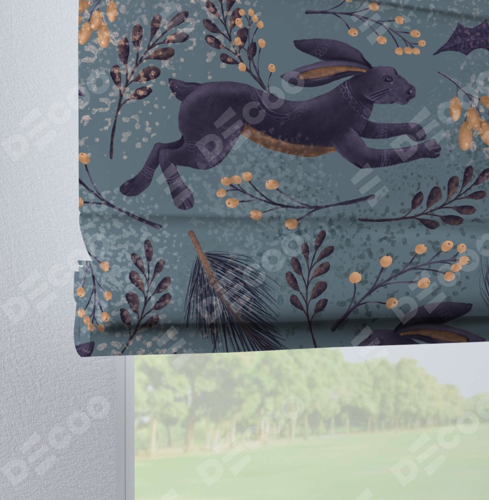 Римская штора производителя «Cortin», используется для проёма, пошита из ткани блэкаут с нанесением сублимационной печати «Дарк арт зайцы». Данная модель пошита на петлях, комплектуется на выбор круглым карнизом и подходит для монтажа на стену. Римская штора на петлях имеет простую систему регулировки высоты, отличительным преимуществом данной модели является простой способ монтажа. Достаточно повесить ее на трубу и штора готова!