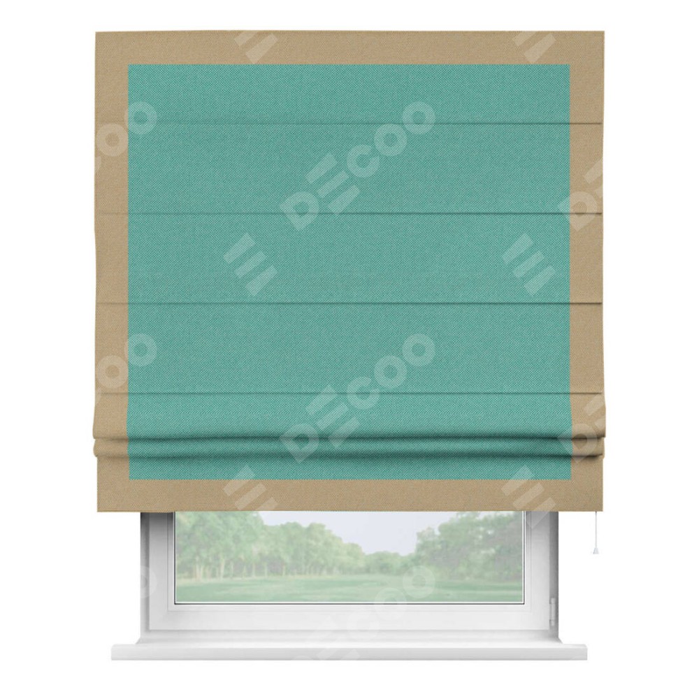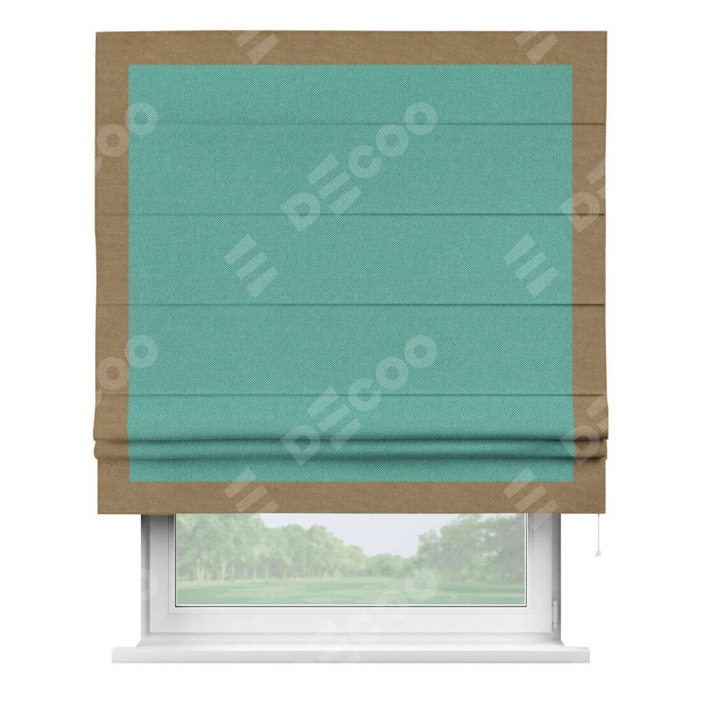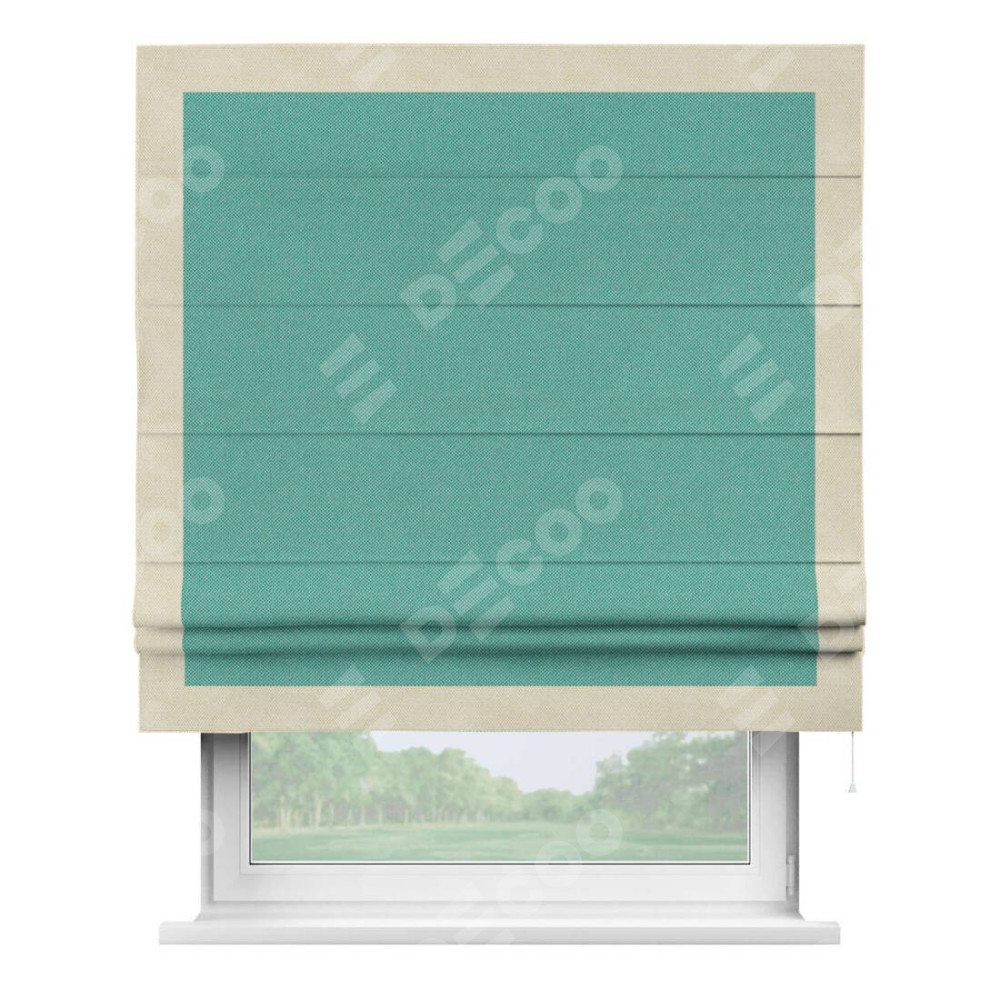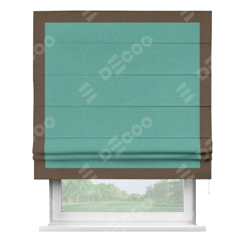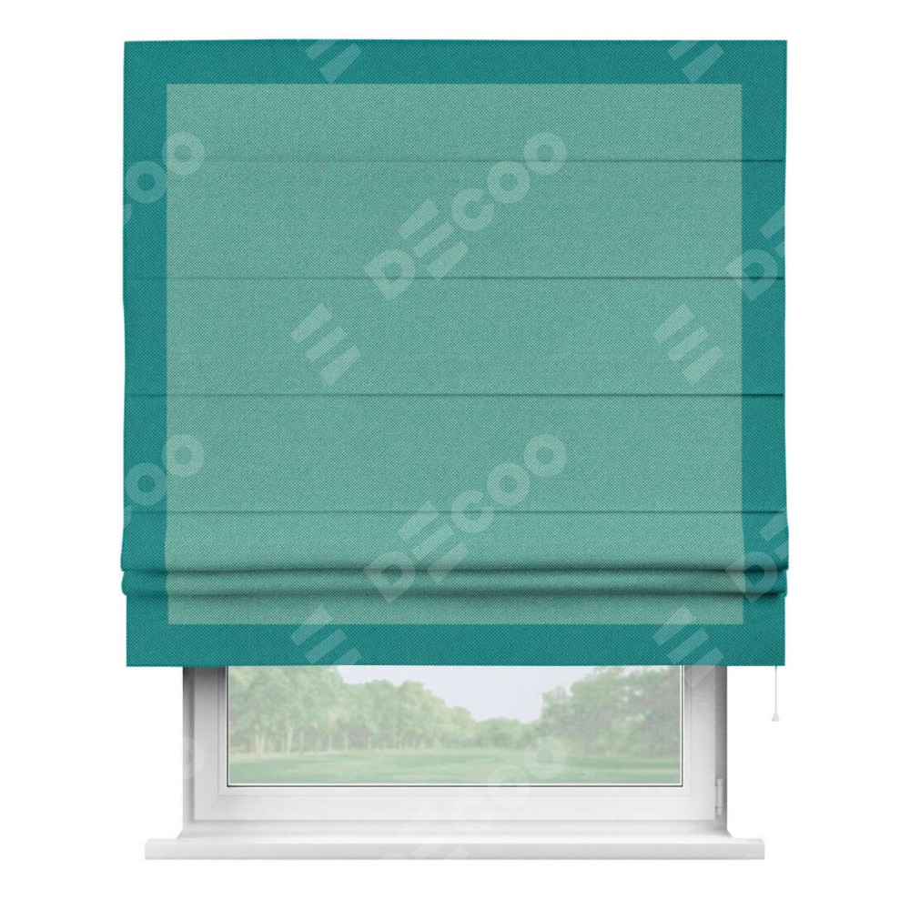 Римская штора «Кортин» с кантом Чесс, для проема, ткань лён димаут, бирюзовый