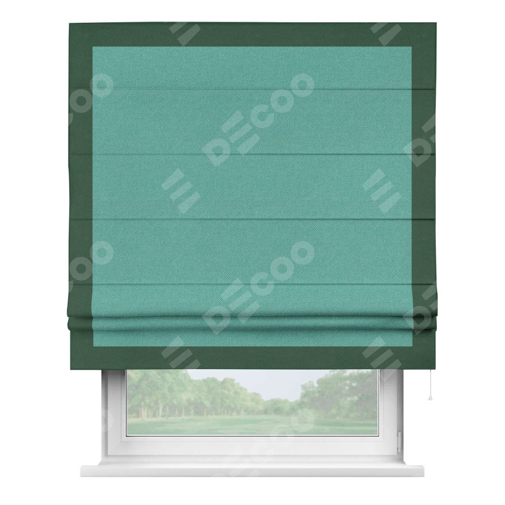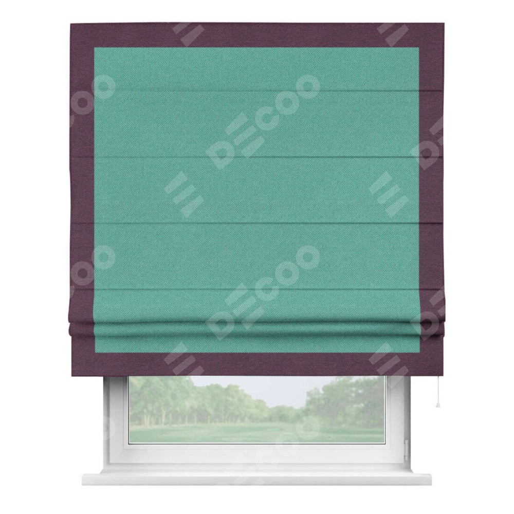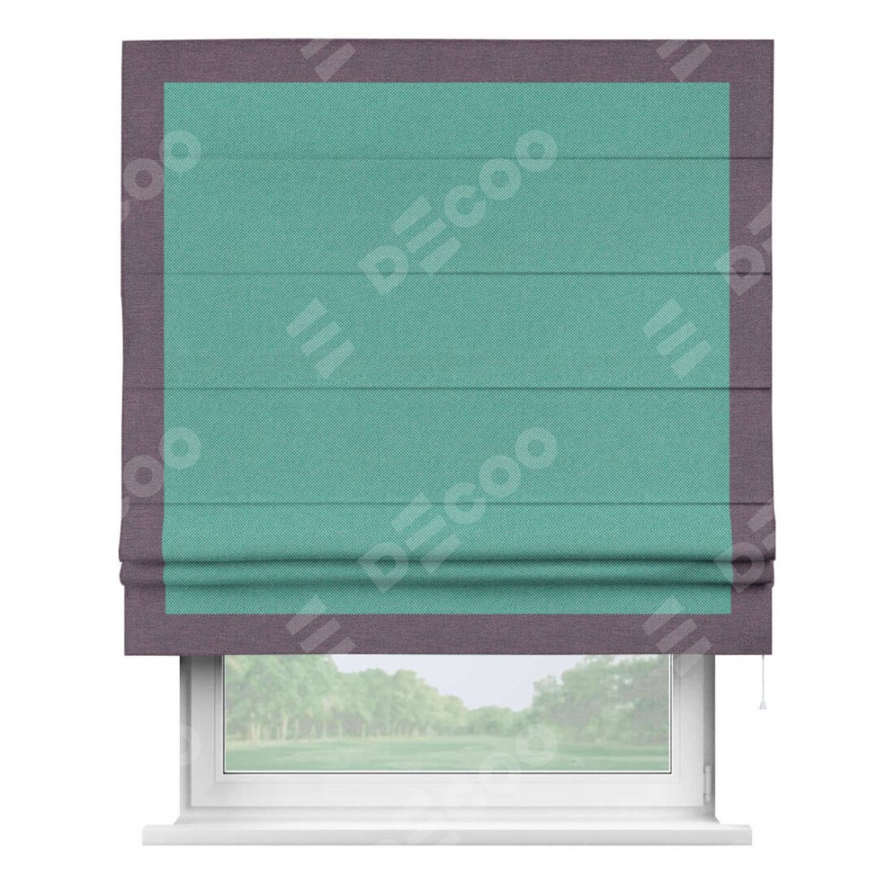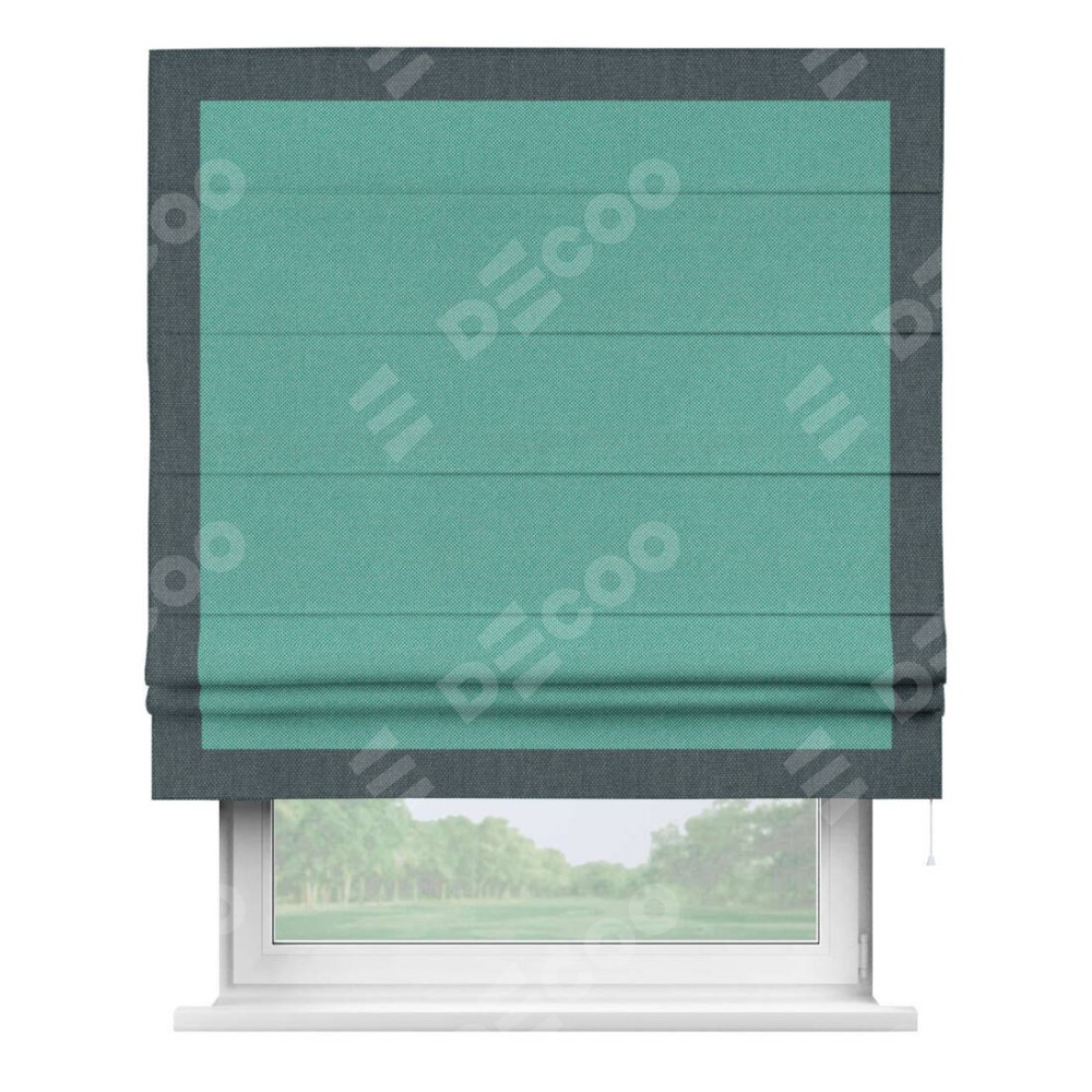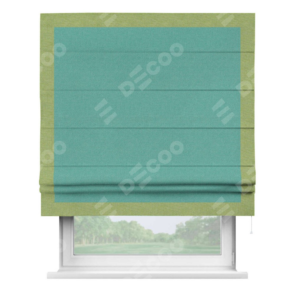 Римская штора «Кортин» с кантом Чесс, для проема, ткань лён димаут, бирюзовый