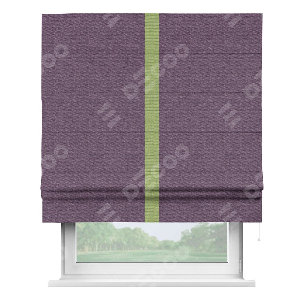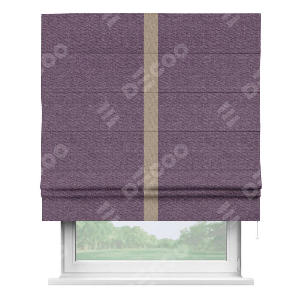 Римская штора производителя «Cortin», используется для проёма, пошита из ткани лён димаут брусника, артикул 16. Отделка шторы кантом «Хайвэй», ткань для канта используется из льна димаут разной расцветки на выбор. Имеет универсальный механизм и подходит для монтажа: на потолок, на стену и в нишу.