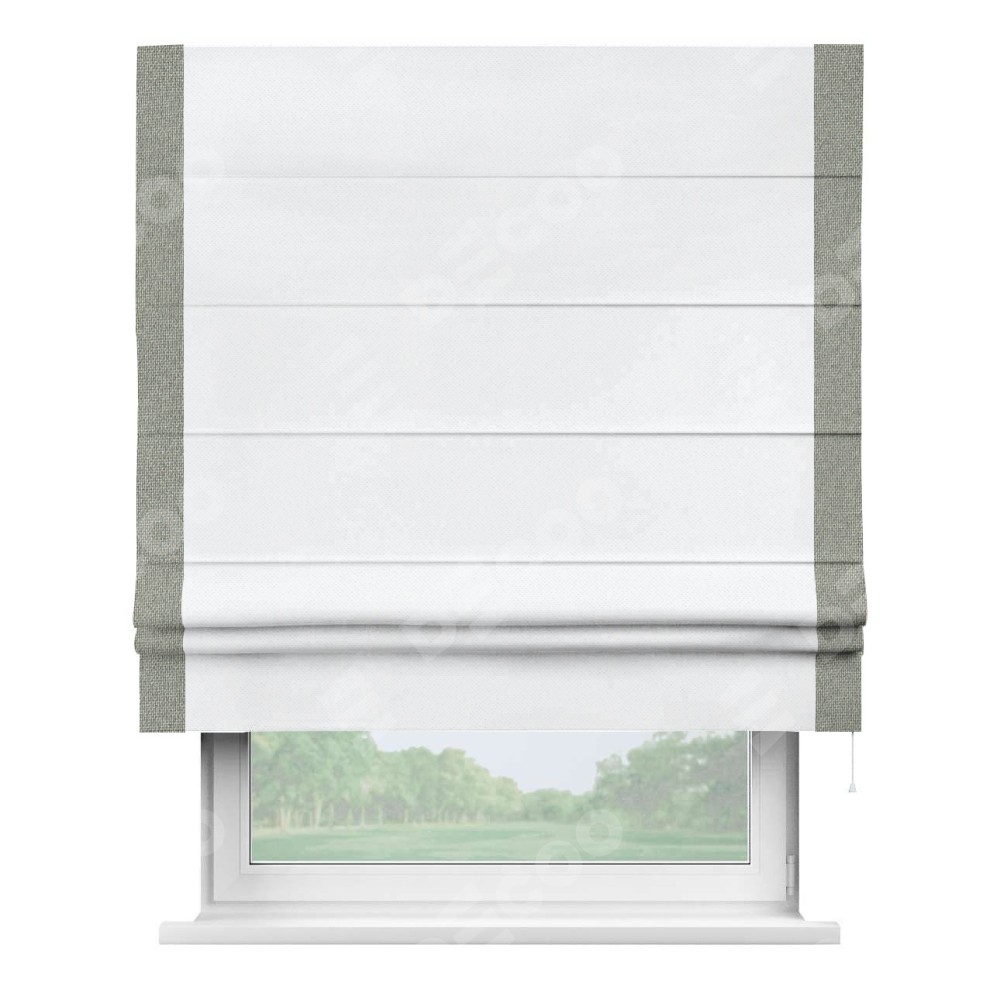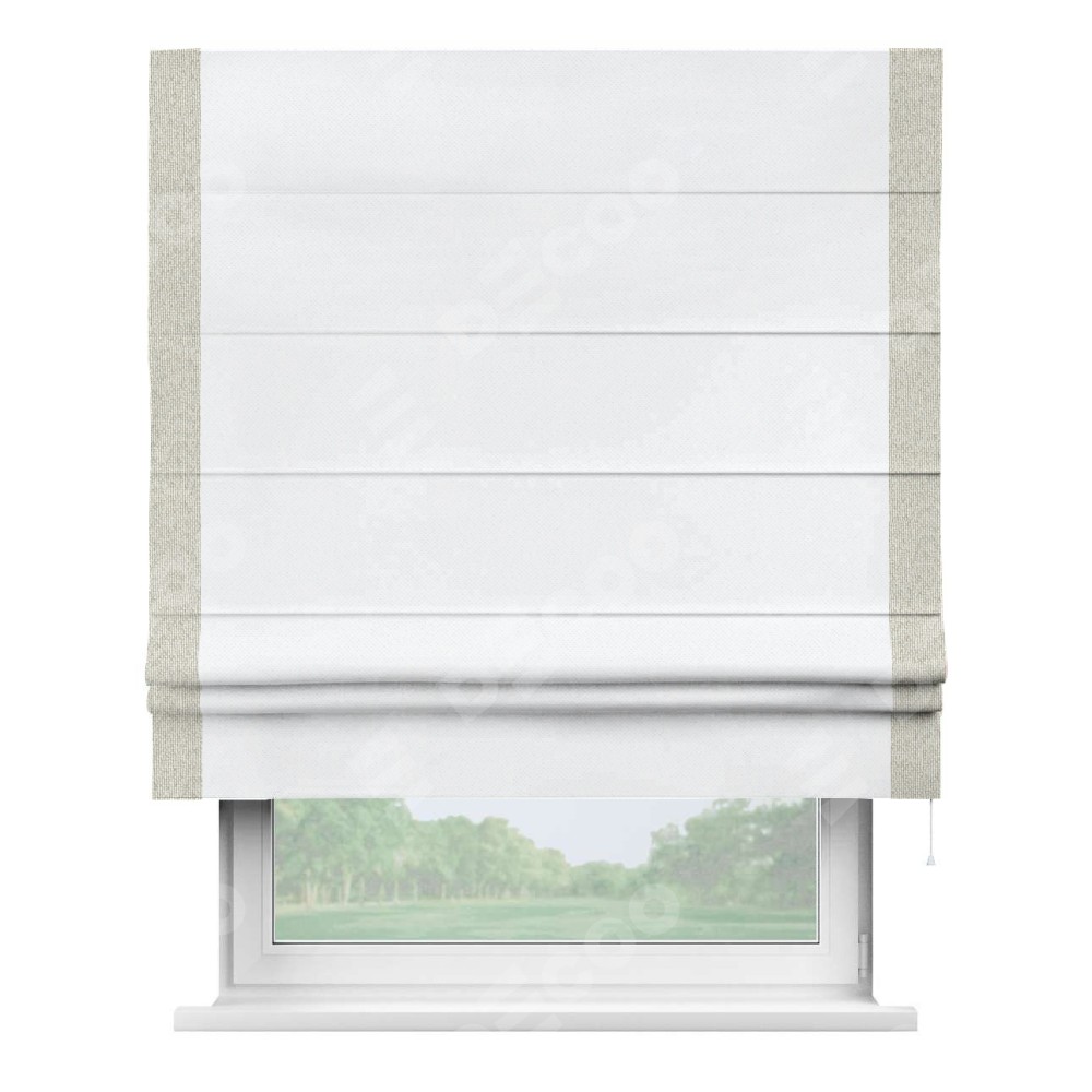 Римская штора «Кортин» для проема, лён димаут белый с кантом Стрим Дуо