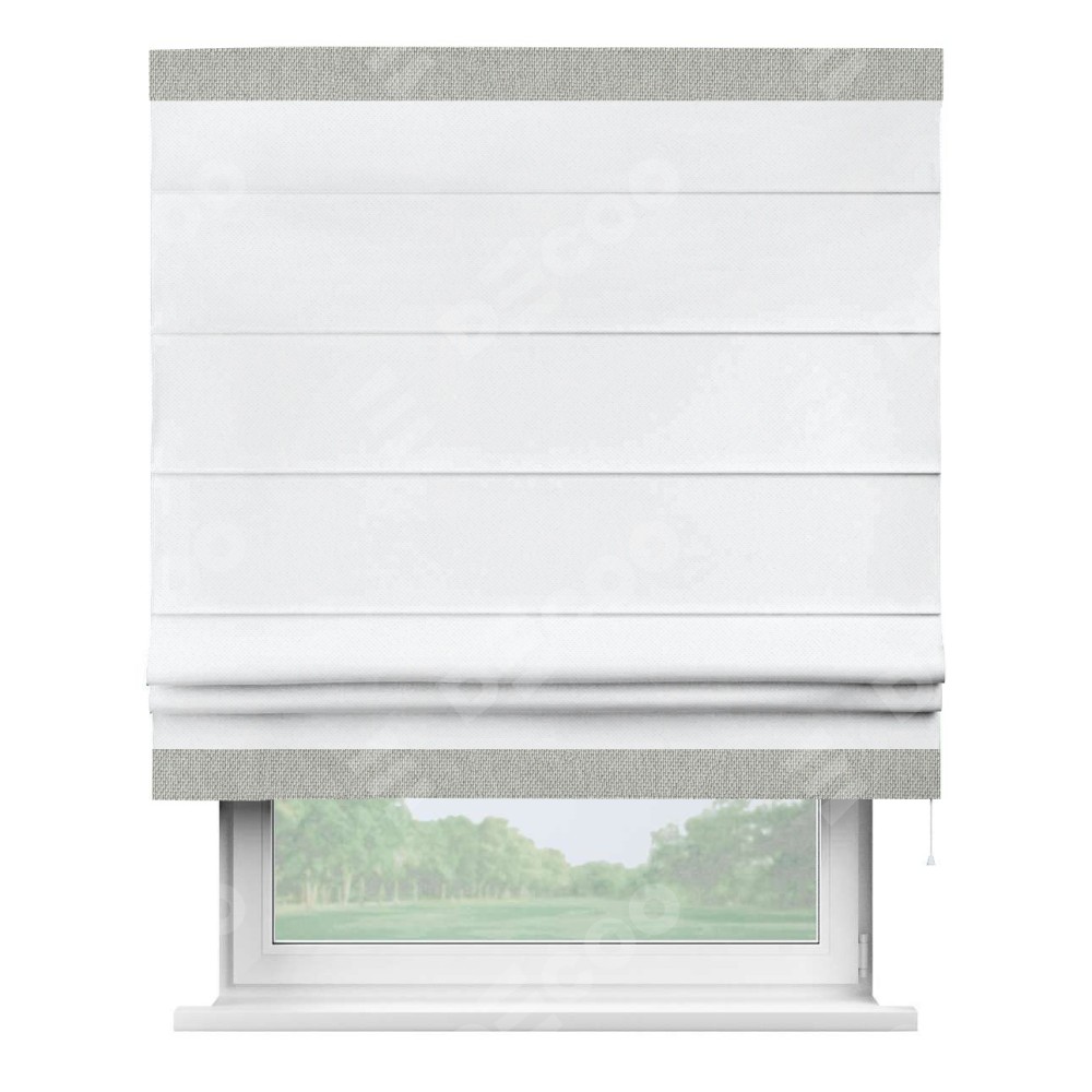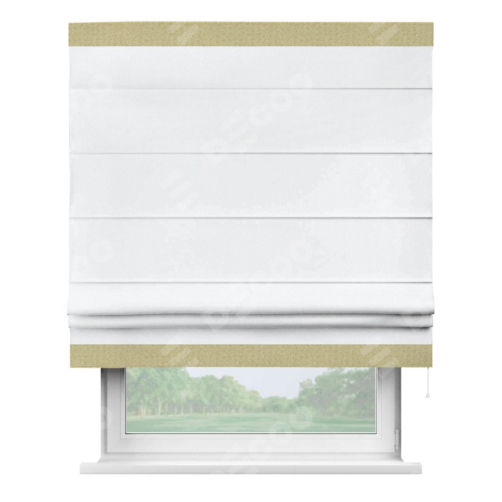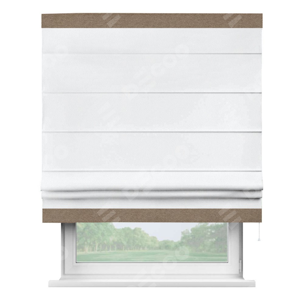 Римская штора «Кортин» для проема, лён димаут белый с кантом Горизонт