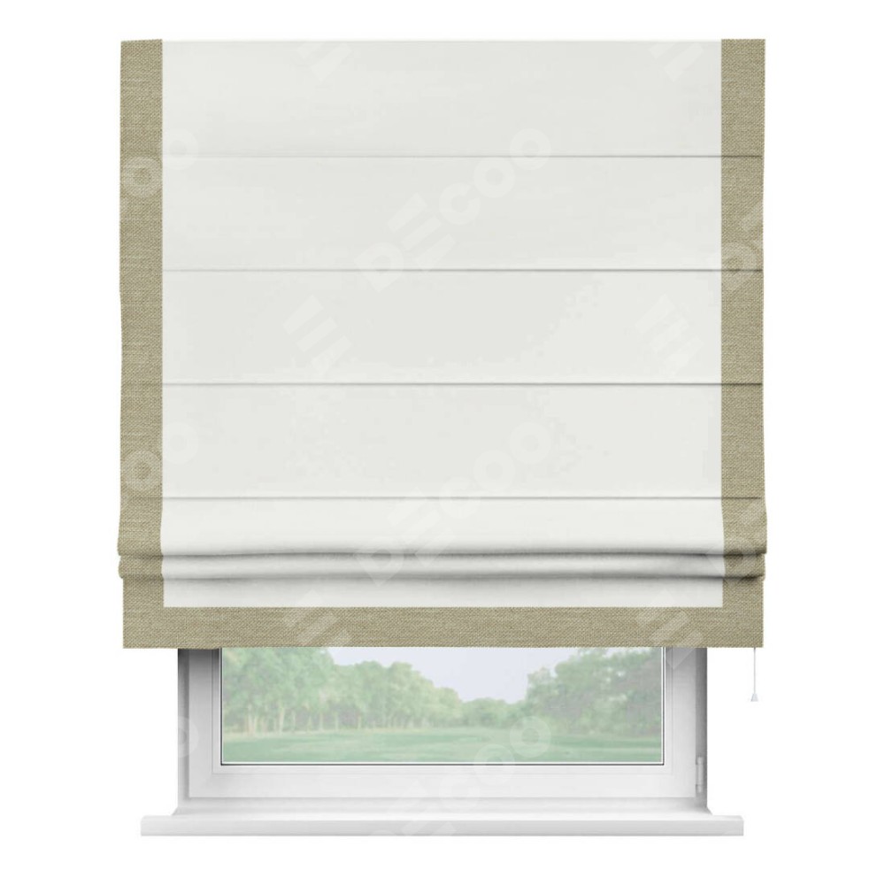 Классическая римская штора производителя «Cortin», пошита из ткани лён димаут молочный, артикул: 29. Имеет универсальный механизм и подходит для монтажа: на потолок, на стену и в нишу.