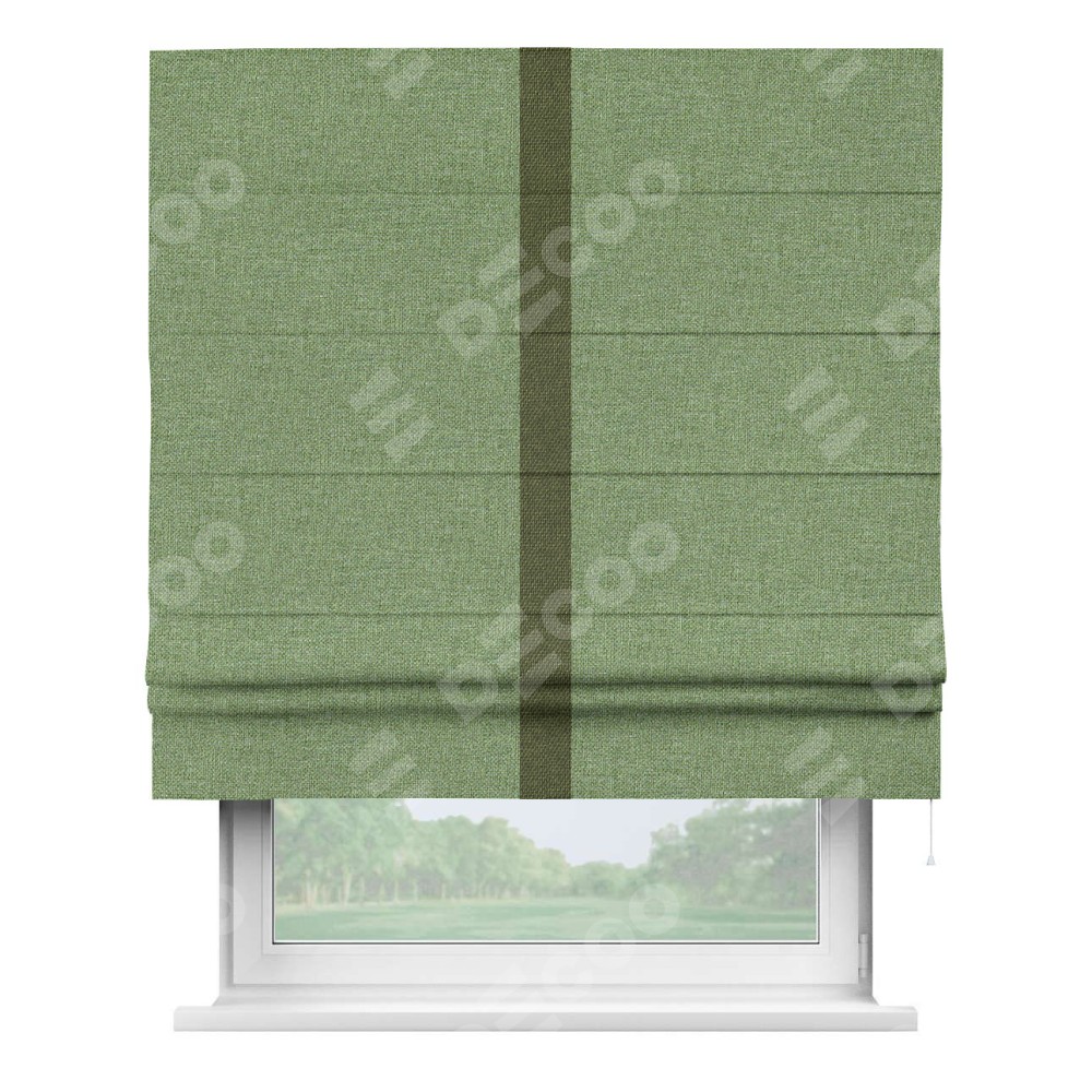 Римская штора «Cortin» для проёма, лён димаут светло-салатовый с кантом Хайвэй