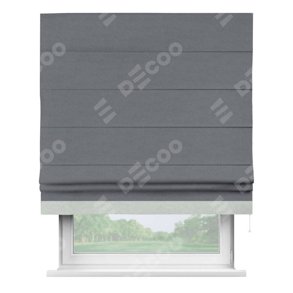 Классическая римская штора производителя «Cortin», пошита из ткани лён блэкаут тёмно-серый, артикул: 139663. Имеет универсальный механизм и подходит для монтажа: на потолок, на стену и в нишу.