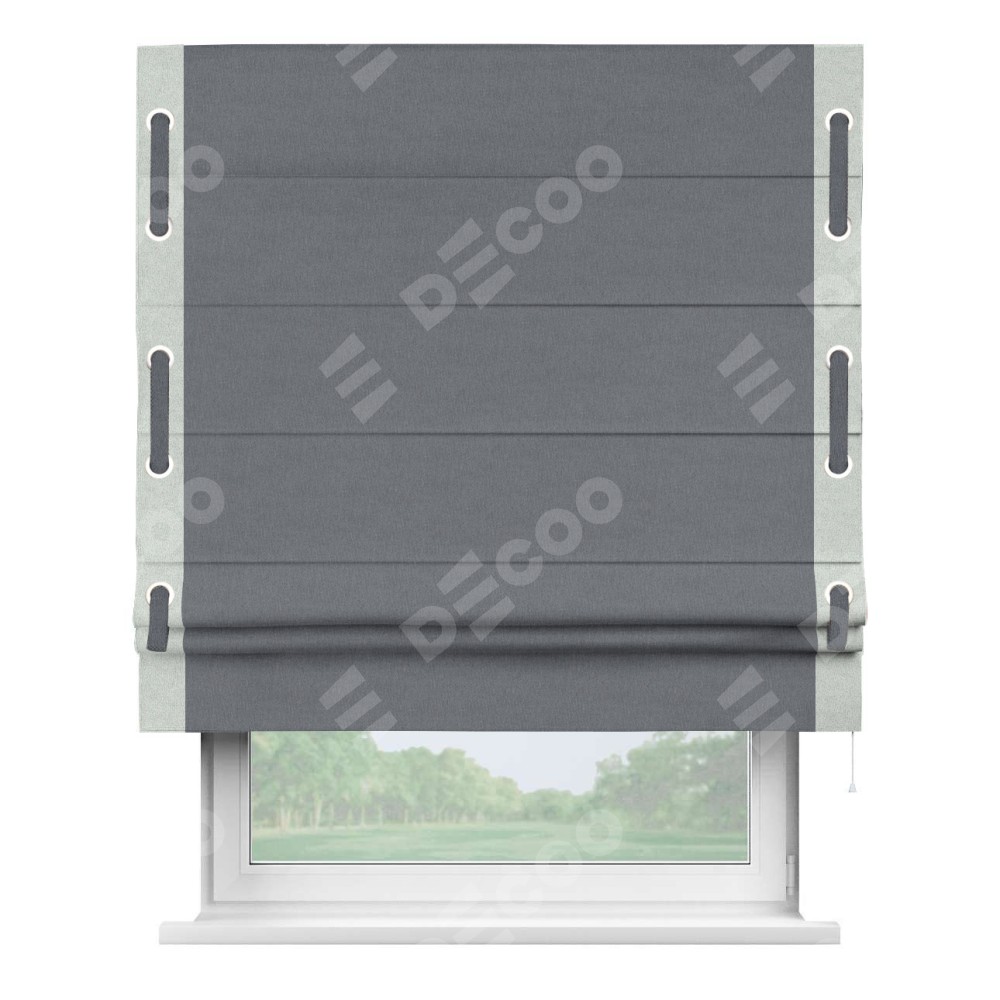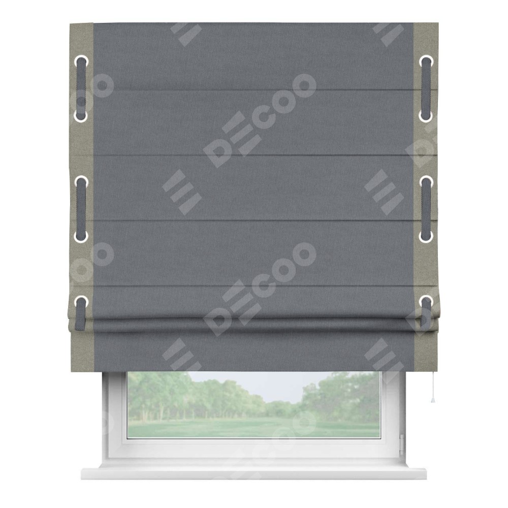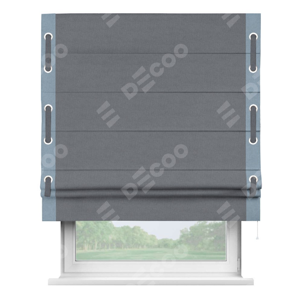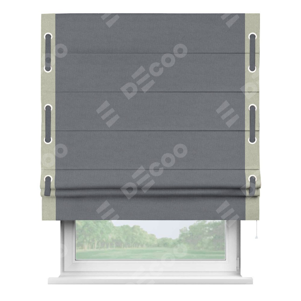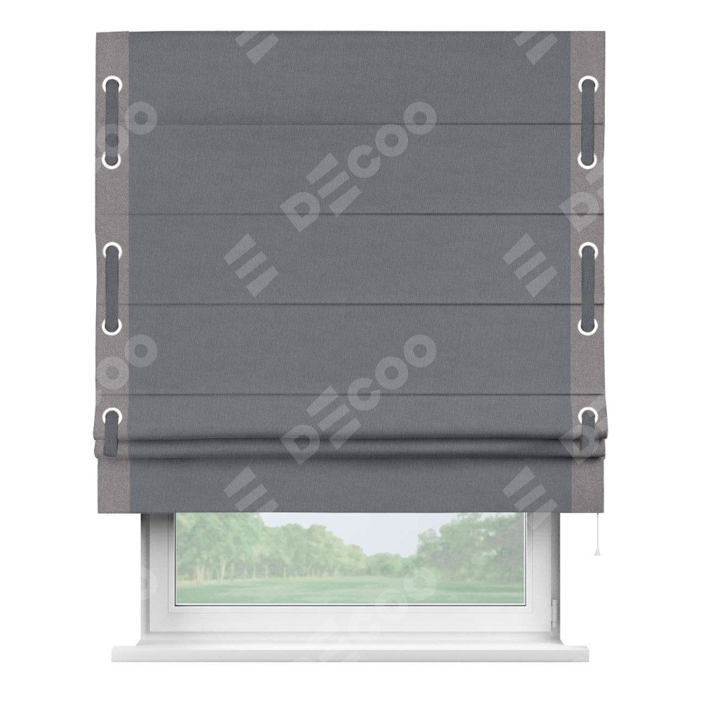 Классическая римская штора производителя «Cortin», пошита из ткани лён блэкаут тёмно-серый, артикул: 139663. Имеет универсальный механизм и подходит для монтажа: на потолок, на стену и в нишу.