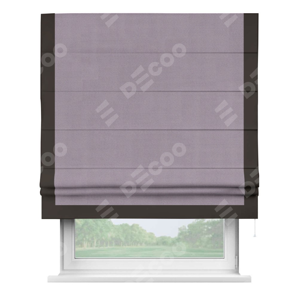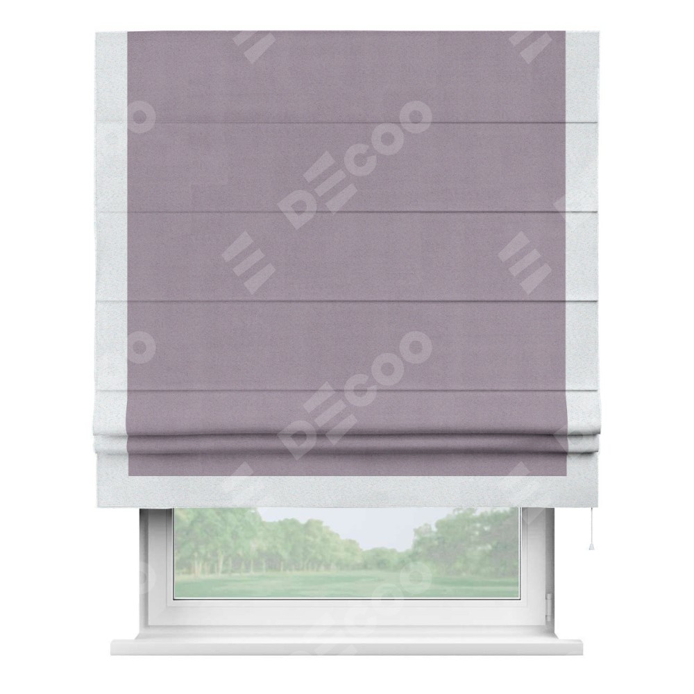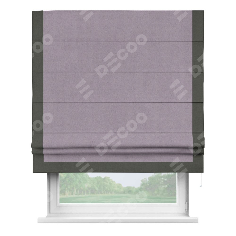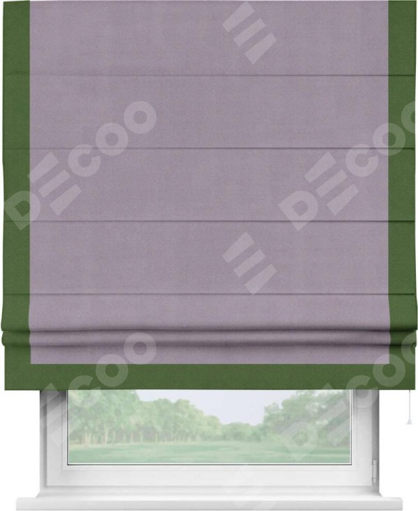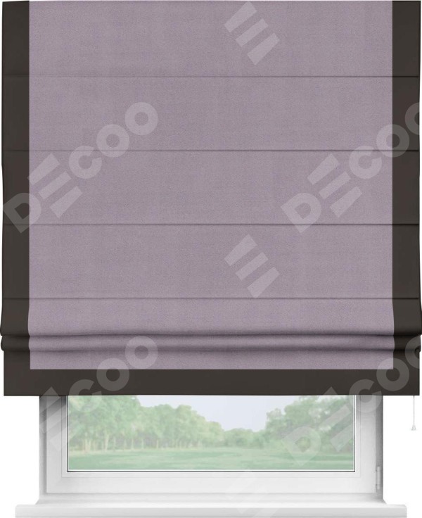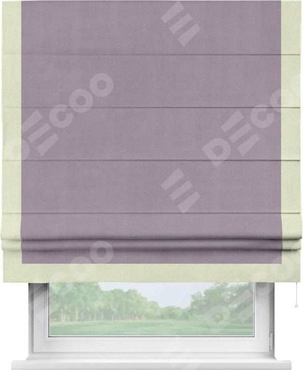 Римская штора «Кортин» для проёма, блэкаут однотонный лиловый с кантом Виктория