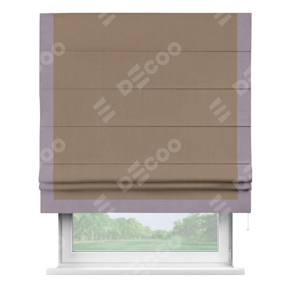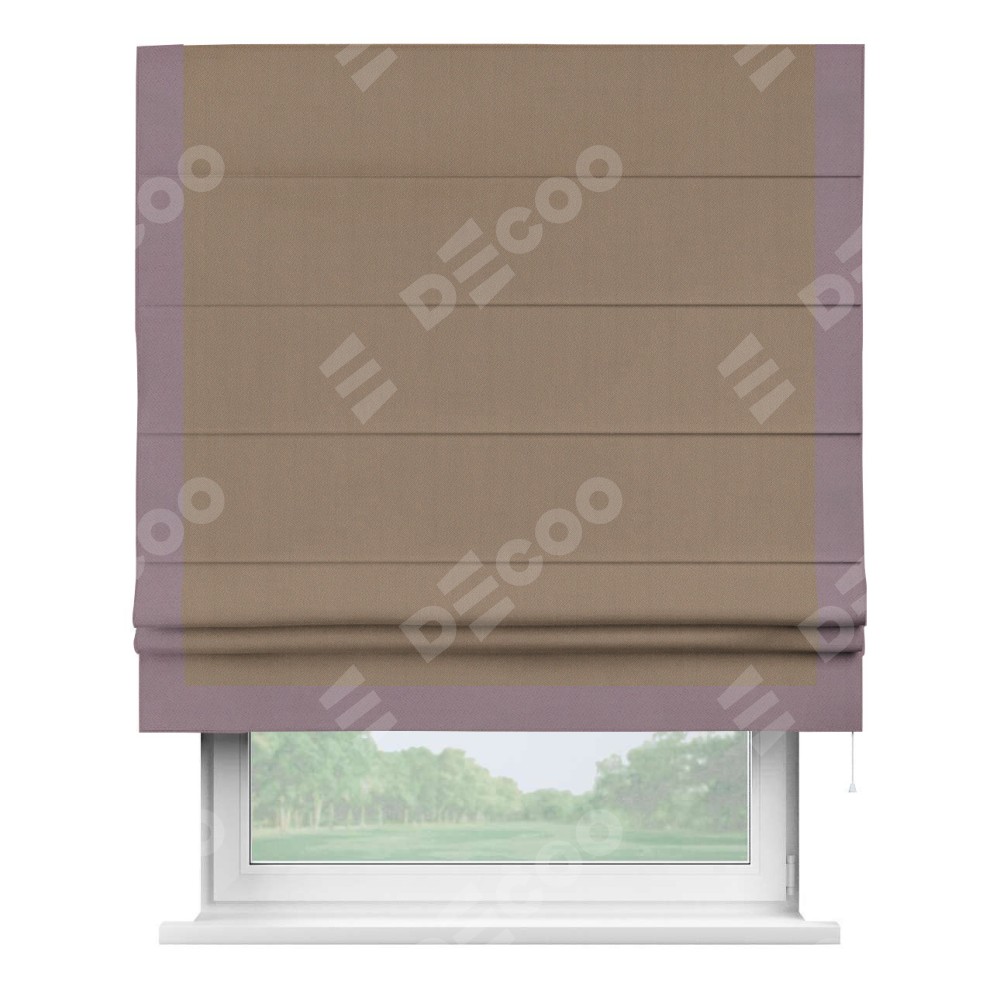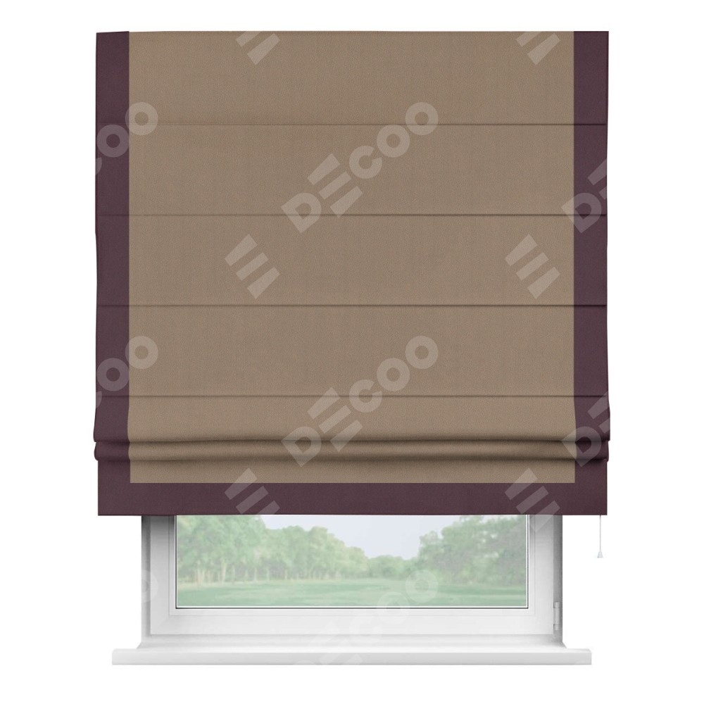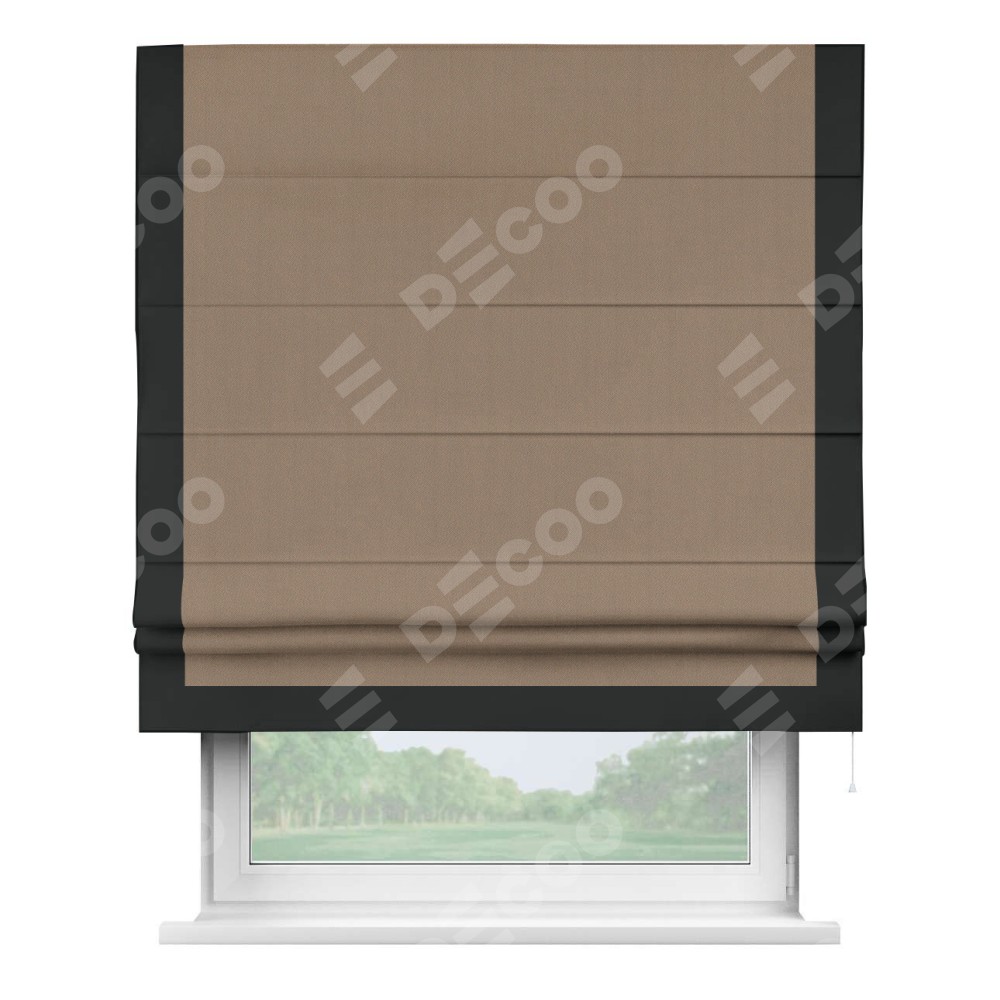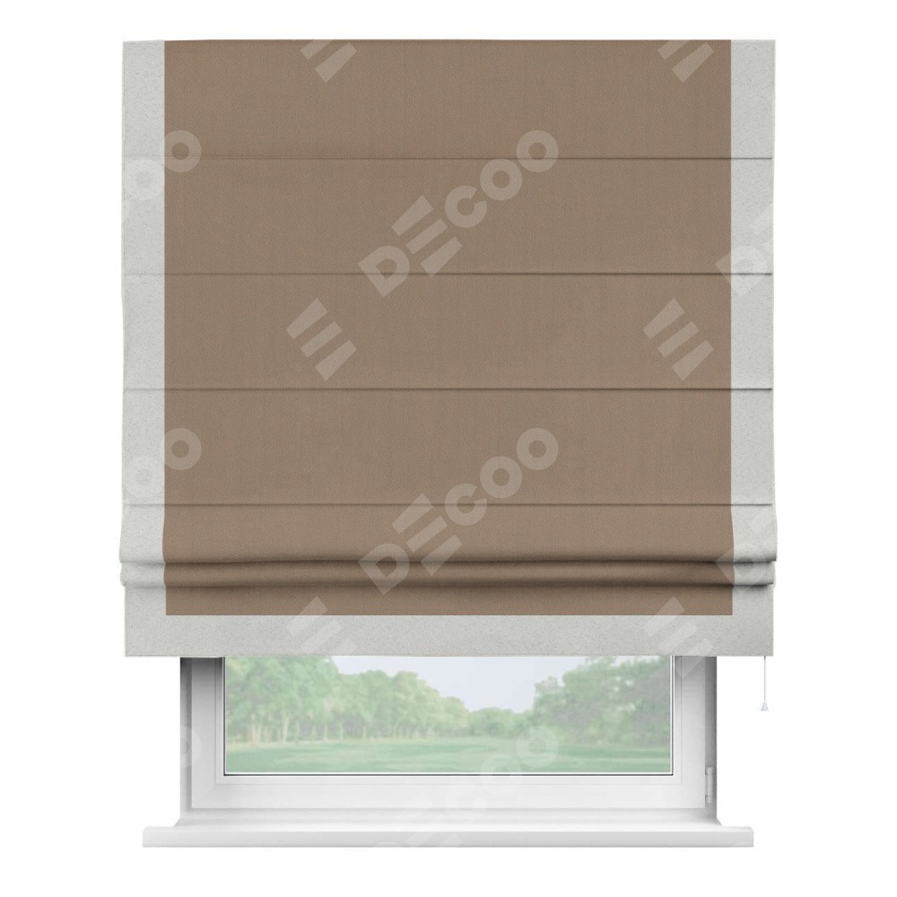 Римская штора «Cortin» для проёма, ткань блэкаут однотонный кофейно-бежевый с кантом Виктория