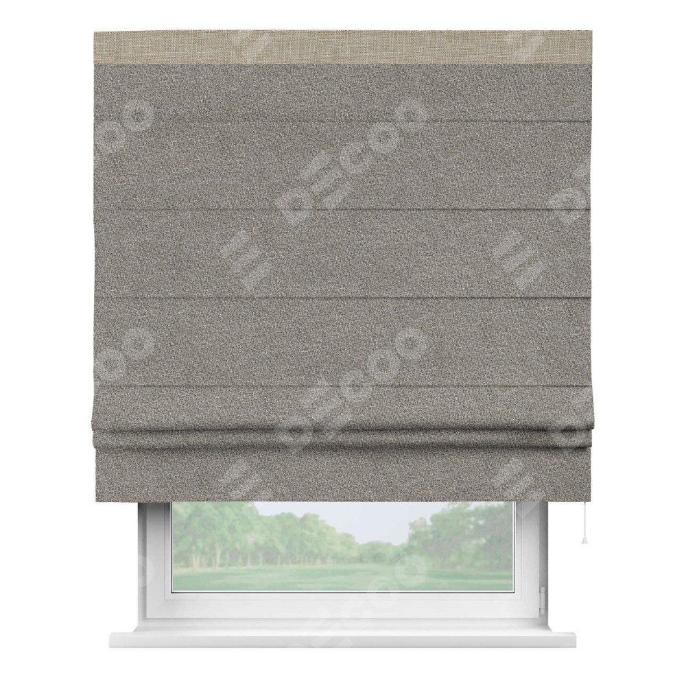 Римская штора «Кортин» для проёма, лён меланж натуральный, с кантом Кинг