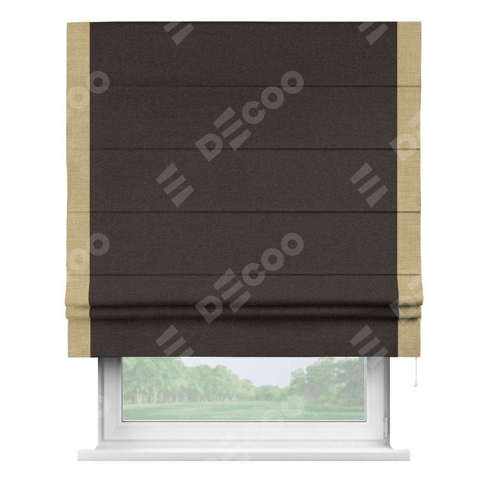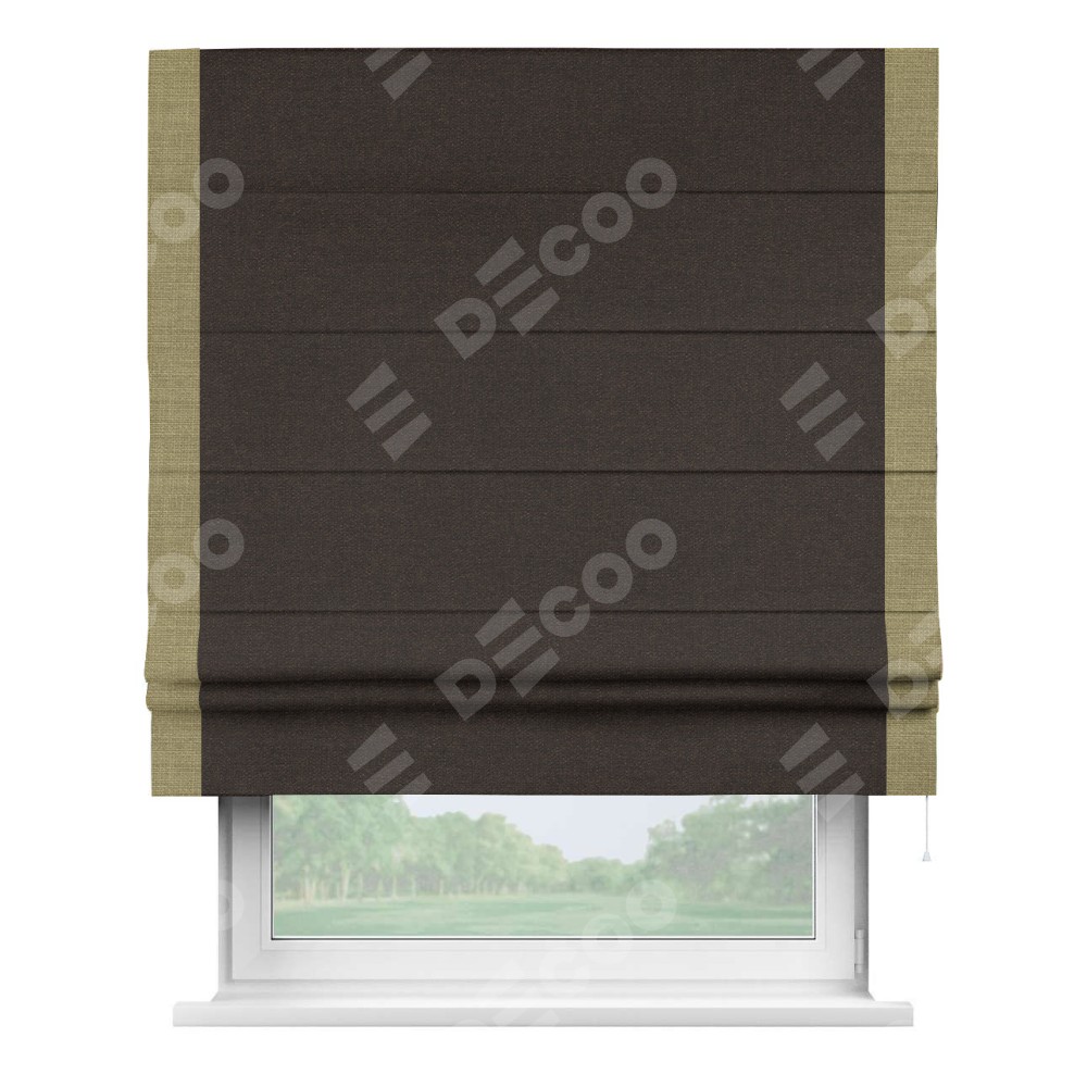 Римская штора «Кортин» для проёма, лён тёмно-коричневый, с кантом Стрим Дуо