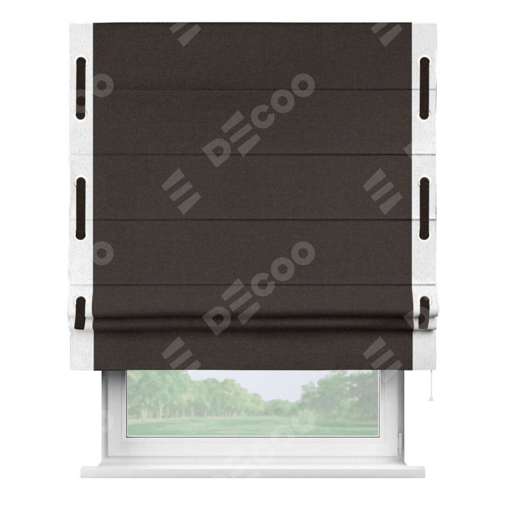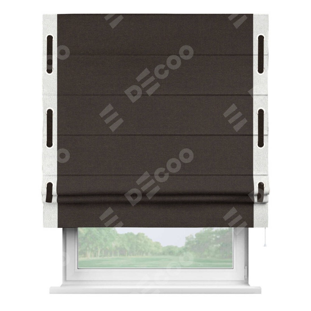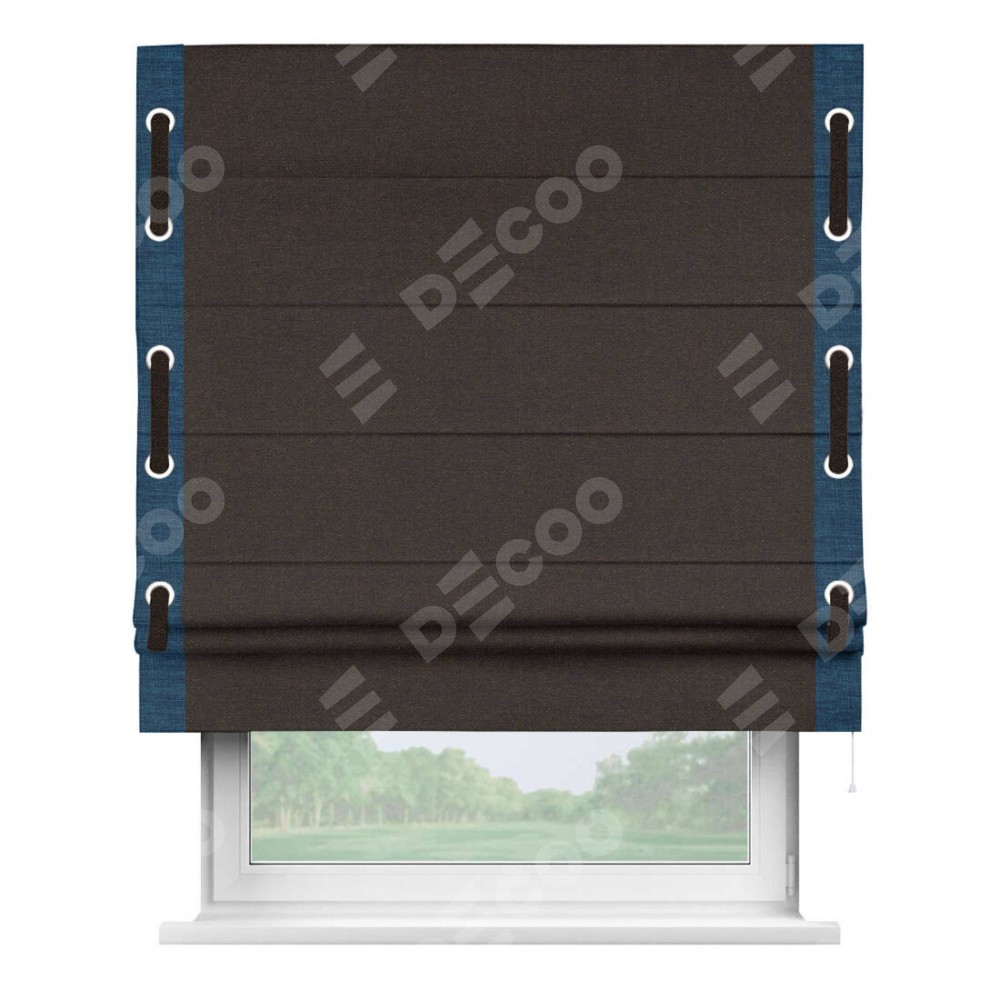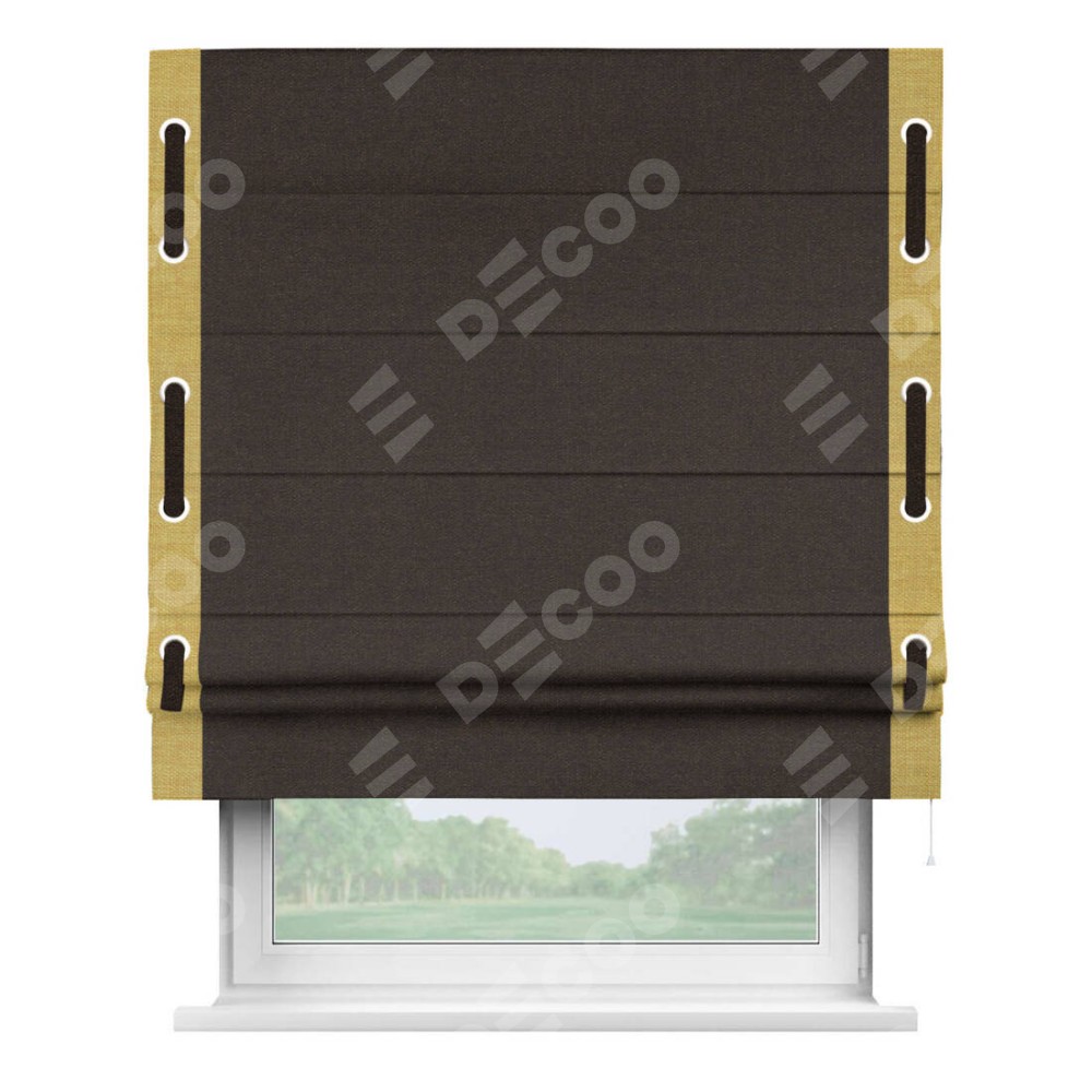 Римская штора «Кортин» для проёма, лён тёмно-коричневый, с кантом Стрим Дуо (люверсы с пояском)