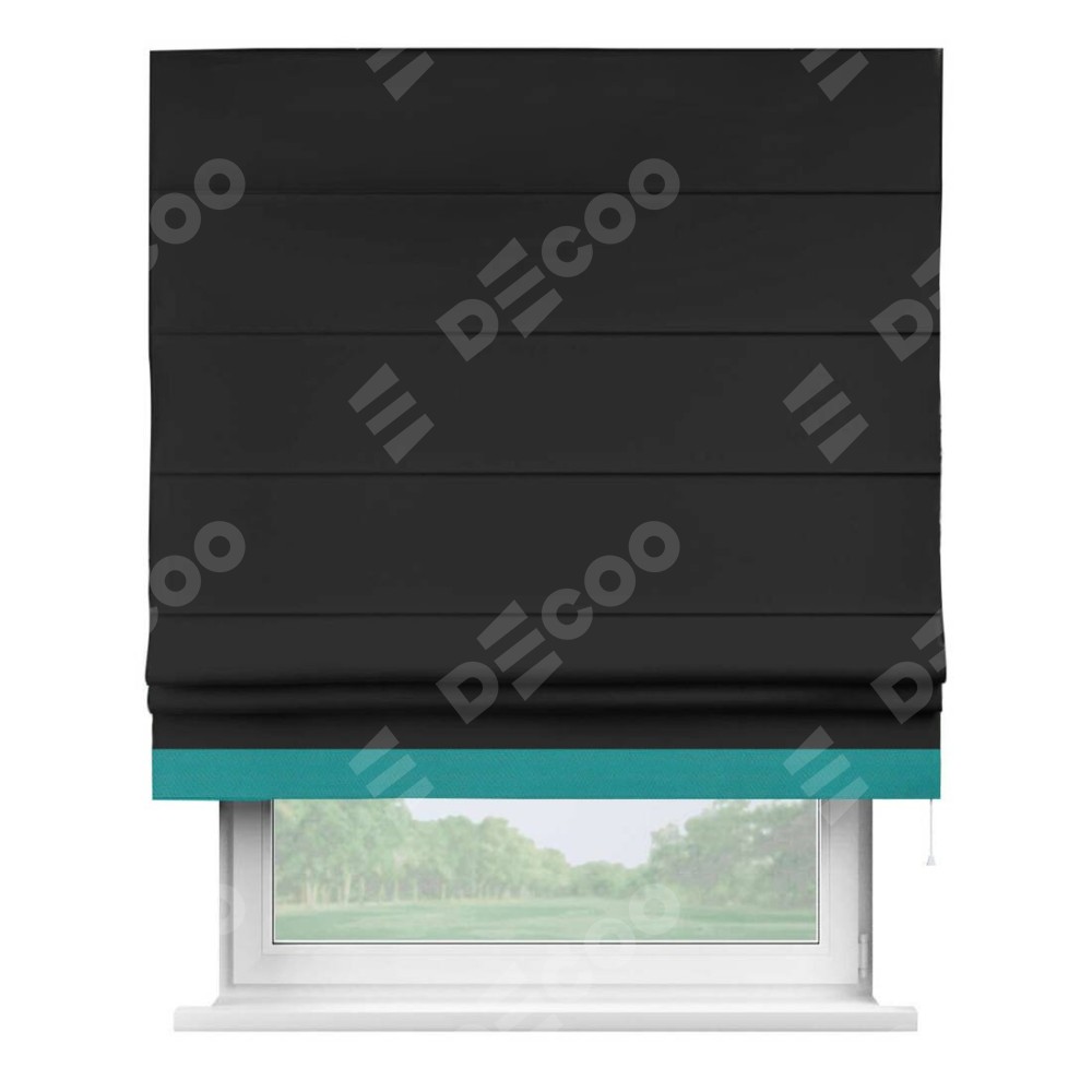 Римская штора «Cortin» для проёма, блэкаут однотонный черный с кантом Джестер