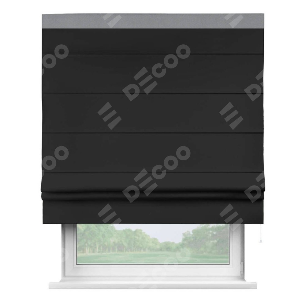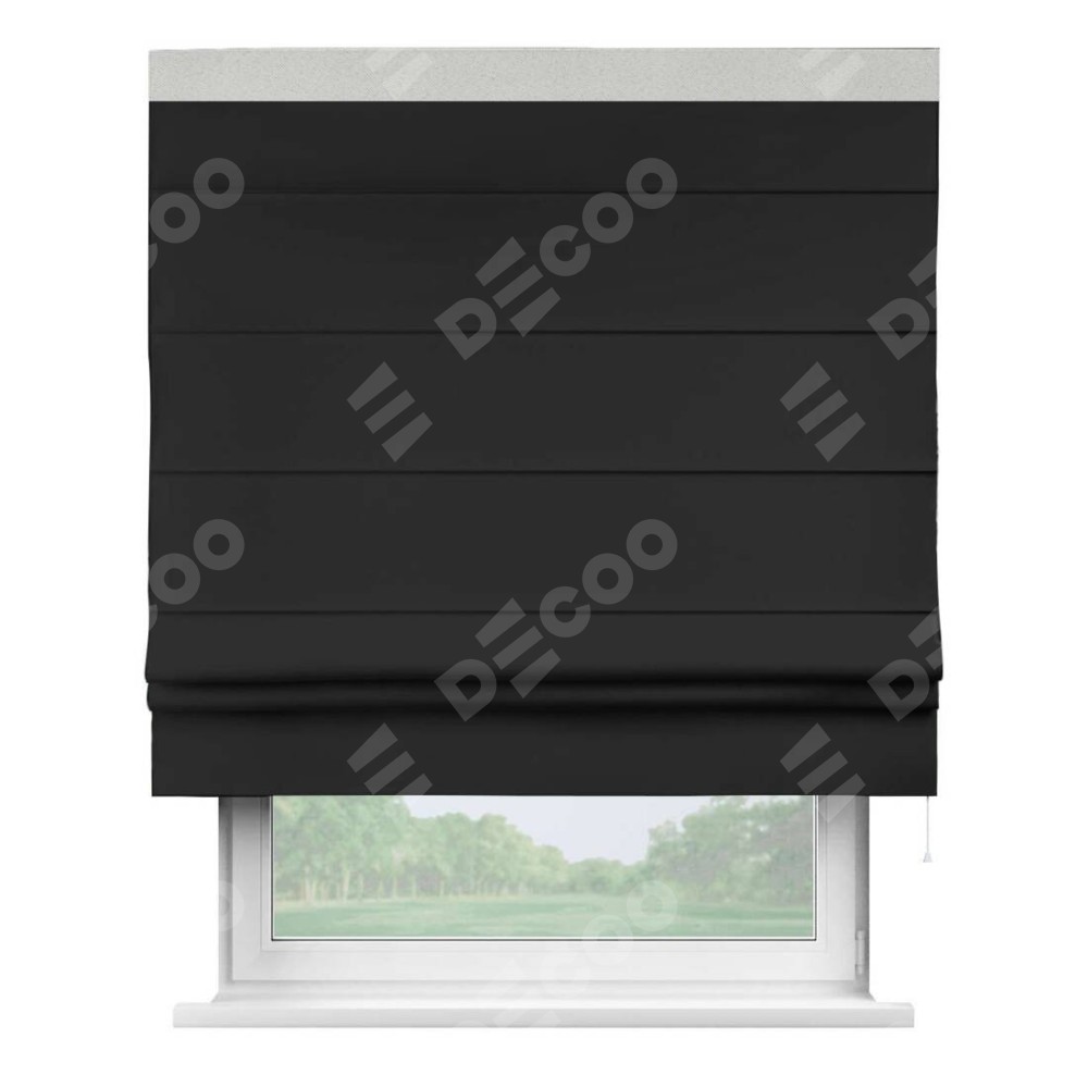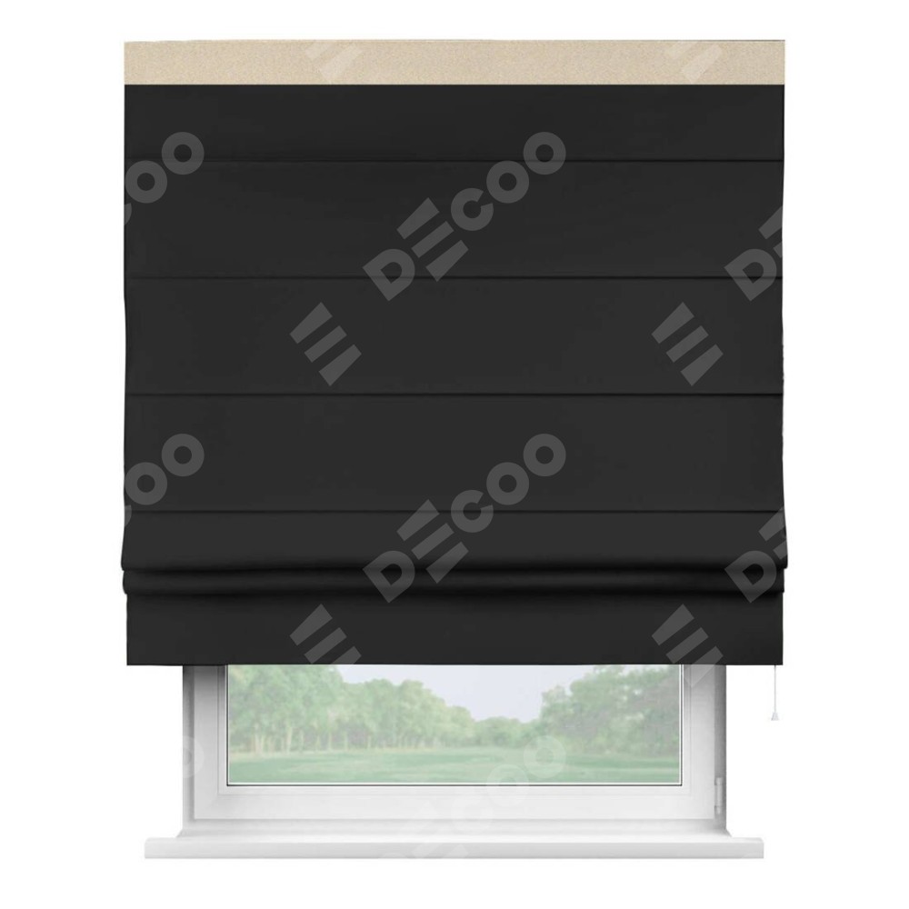 Классическая римская штора производителя «Cortin», пошита из ткани однотонный блэкаут черный, артикул: 37. Имеет универсальный механизм и подходит для монтажа: на потолок, на стену и в нишу.