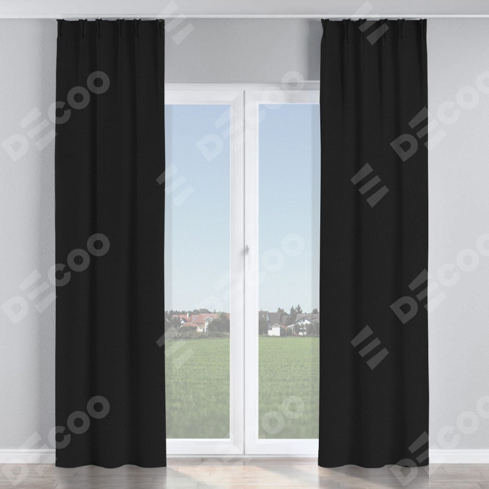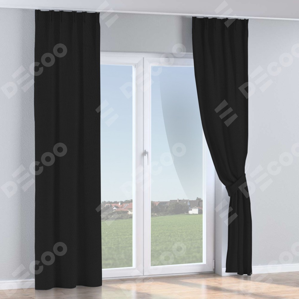 Комплект прямых штор, от производителя «Cortin», пошиты из ткани лён рустик черный, артикул ткани 145313. С изнаночной стороны в верхней части штор пристрачивается шторная лента с декоративными складками «Кустик». Для создания элегантных складок рекомендуемый коэффициент 1:2 (на 100 см. ширины проёма 200 см. ширины ткани). Важно! Ширина штор указана без учёта коэффициента сборки!