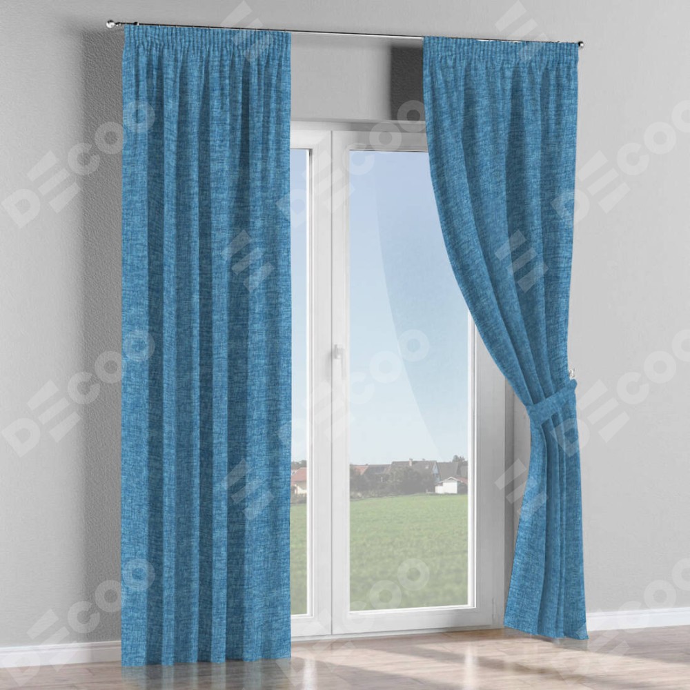 Готовые шторы от производителя «Cortin» представлены комплектом из двух одинаковых по размеру полотен, пошитых из ткани рогожка димаут джинс, артикул ткани 91026. Такие шторы по сравнению с индивидуальным пошивом имеют ряд преимуществ: удобный размерный ряд под стандартные проёмы, стоимость и сроки (т.к. изделия всегда в наличии).