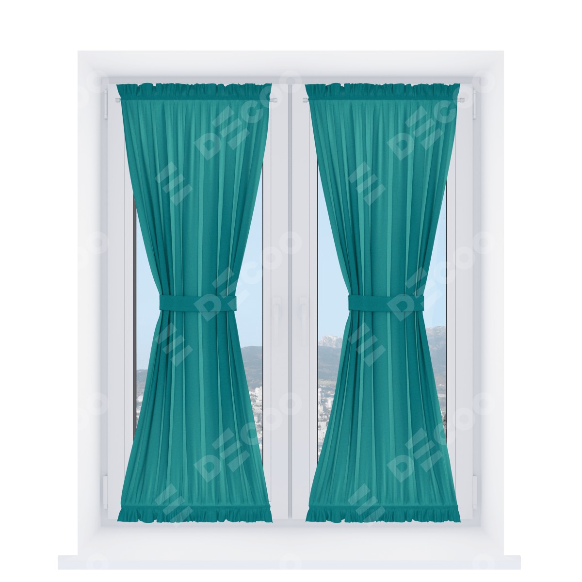 Штора «Песочные часы» производителя «Cortin», используется для створок окон и дверей, пошита из ткани лён димаут тёмно-бирюзовый, артикул ткани 318.