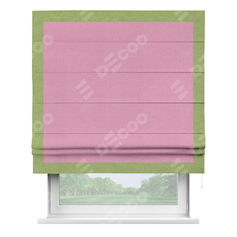 Римская штора «Кортин» с кантом Чесс, для проема, ткань лён димаут, розовый