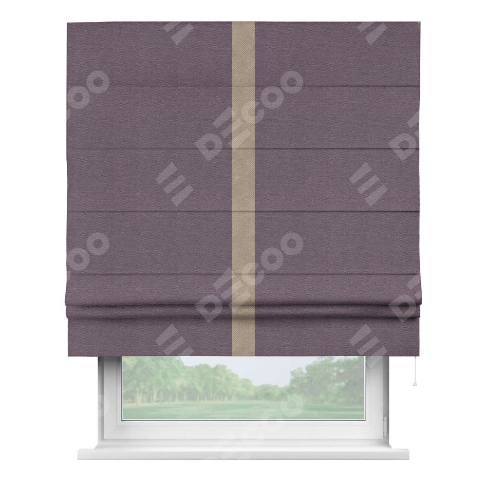 Римская штора «Кортин» с кантом Хайвэй, для проема, ткань лён димаут, светло-фиолетовый