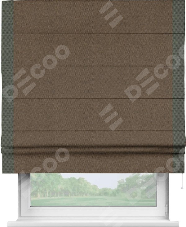 Римская штора «Кортин» с кантом Стрим Дуо, для проема, ткань лён димаут, тёмно-коричневый