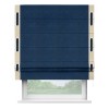 Римская штора производителя «Cortin», используется для проёма, пошита из ткани софт однотонный синий, артикул 42937. Отделка шторы кантом «Стрим Дуо» на кантах расположены люверсы с пояском, ткань для канта используется из софта разной расцветки на выбор. Ткань для пояска обычно используется из основной ткани шторы, а так же можно сделать из любой расцветки по желанию. Имеет универсальный механизм и подходит для монтажа: на потолок, на стену и в нишу.
