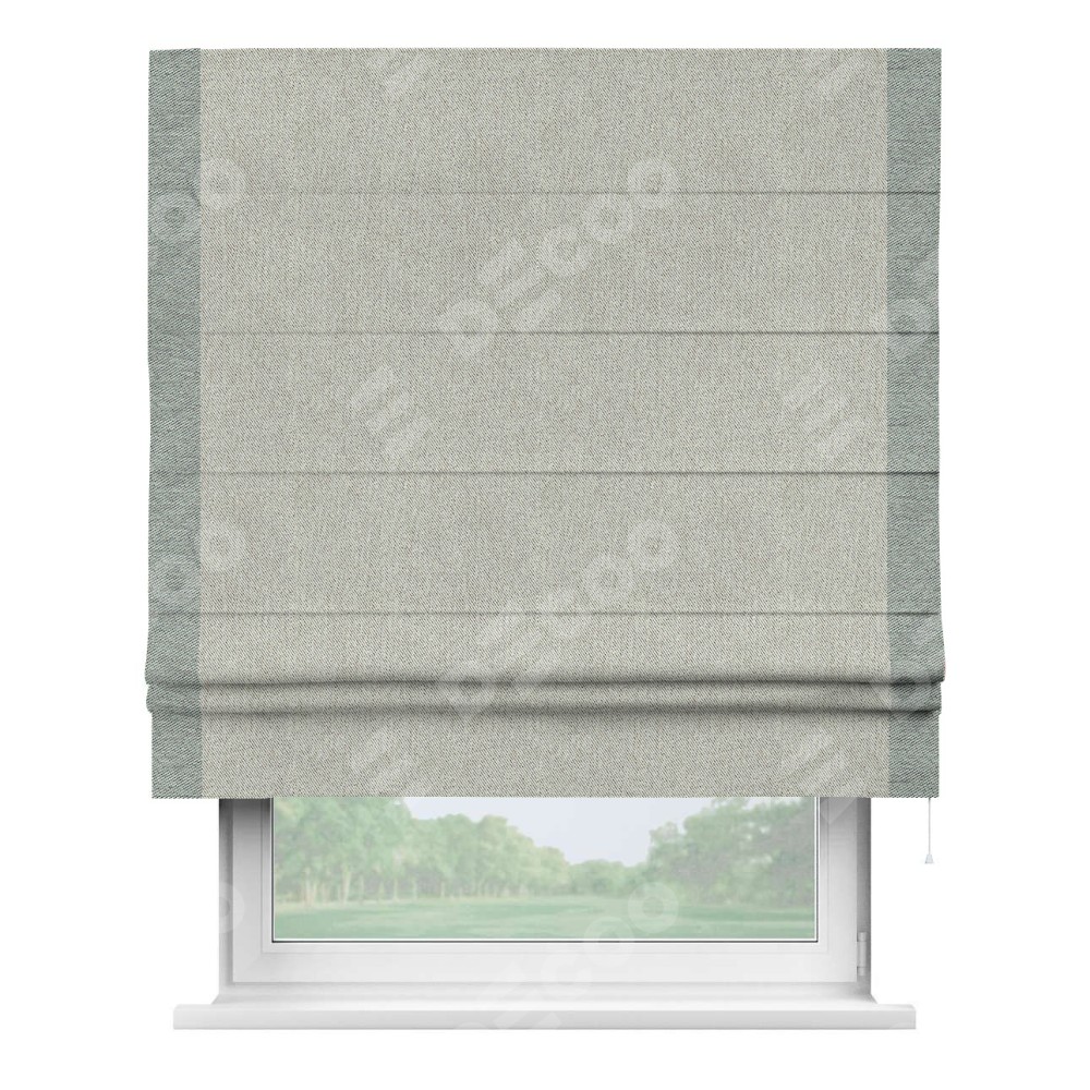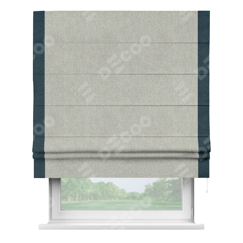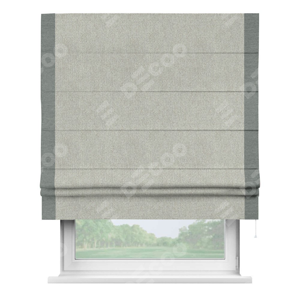 Римская штора производителя «Cortin», используется для проёма, пошита из ткани твид блэкаут коричнево-серый, артикул 21574. Отделка шторы кантом «Стрим Дуо», ткань для канта используется из твида разной расцветки на выбор. Имеет универсальный механизм и подходит для монтажа: на потолок, на стену и в нишу.