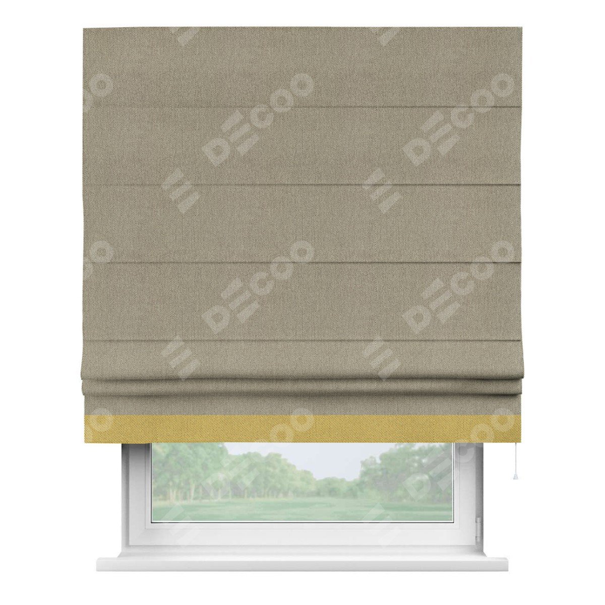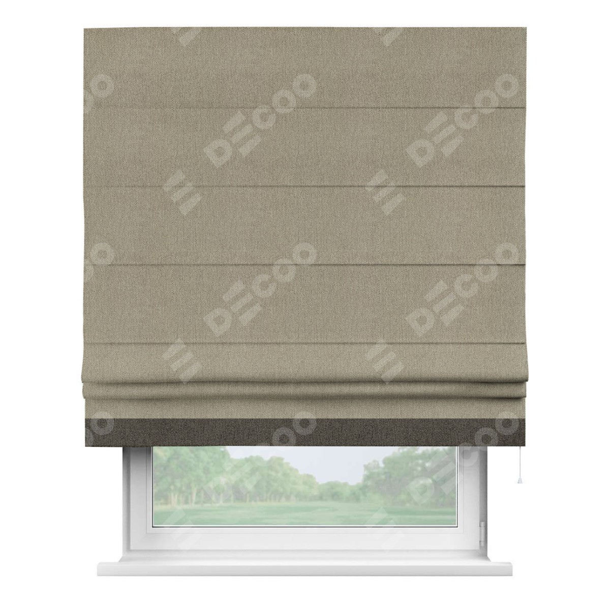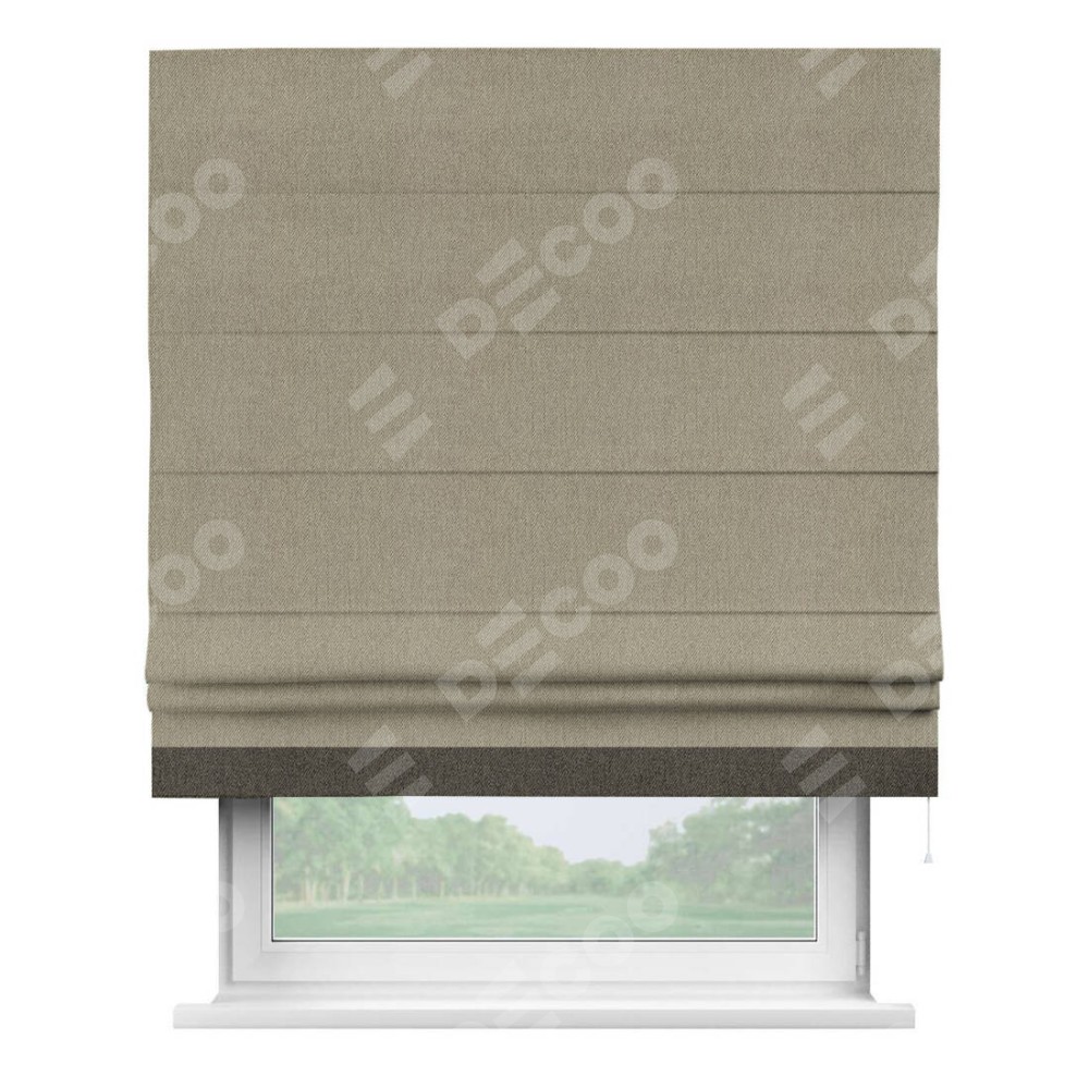 Римская штора производителя «Cortin», используется для проёма, пошита из ткани твид блэкаут кофе, артикул 21575. Отделка шторы кантом «Джестер», ткань для канта используется из твида разной расцветки на выбор. Имеет универсальный механизм и подходит для монтажа: на потолок, на стену и в нишу.