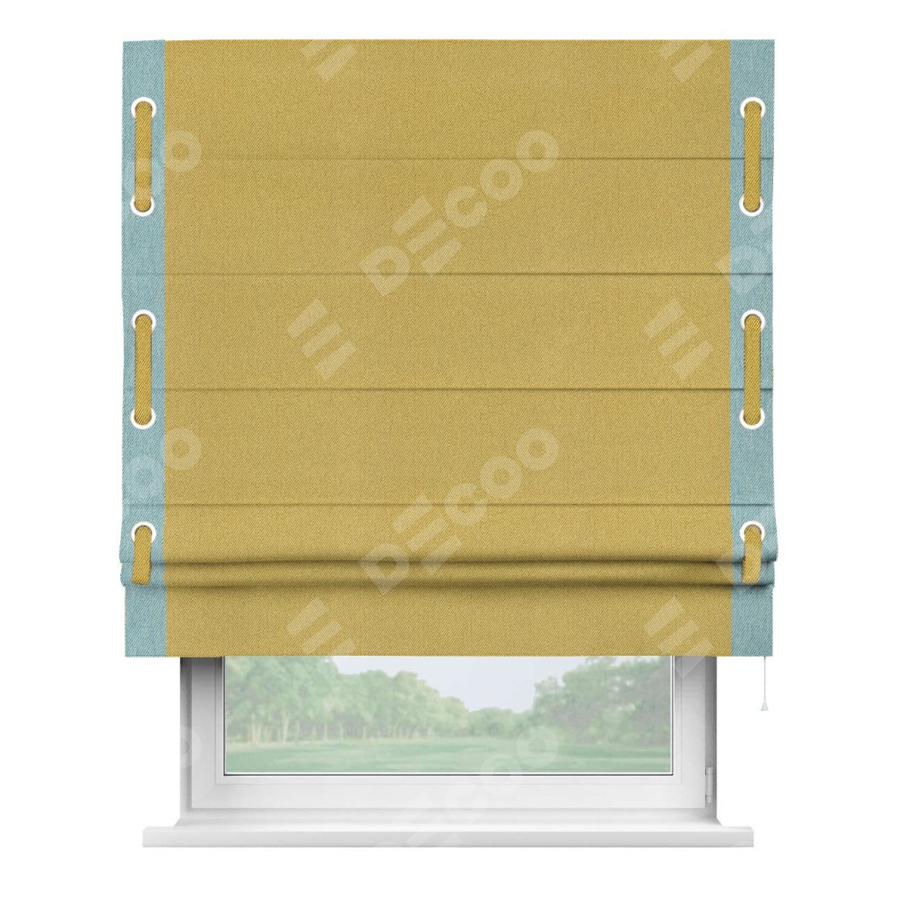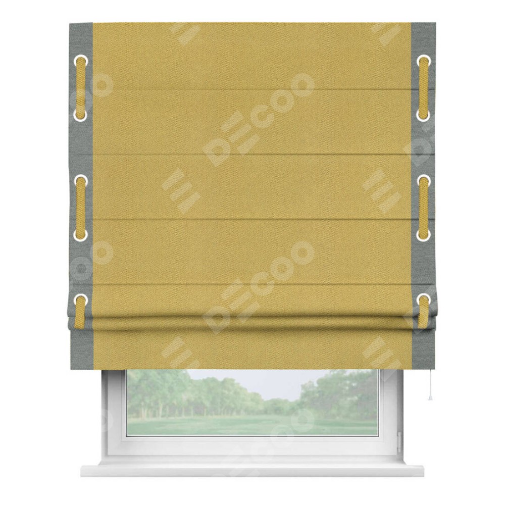 Римская штора «Кортин» с кантом Стрим Дуо (люверсы с пояском), для проема, ткань твид блэкаут, пыльная горчица