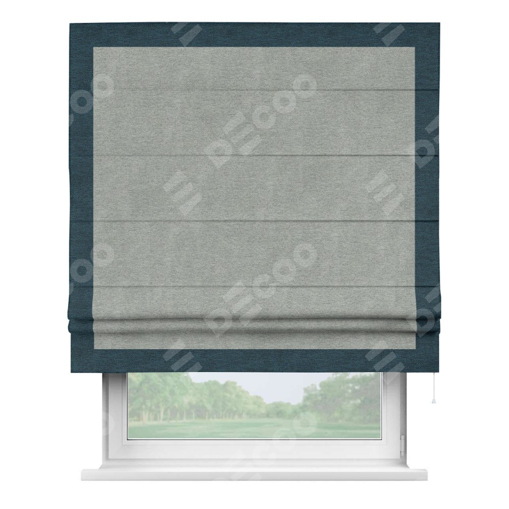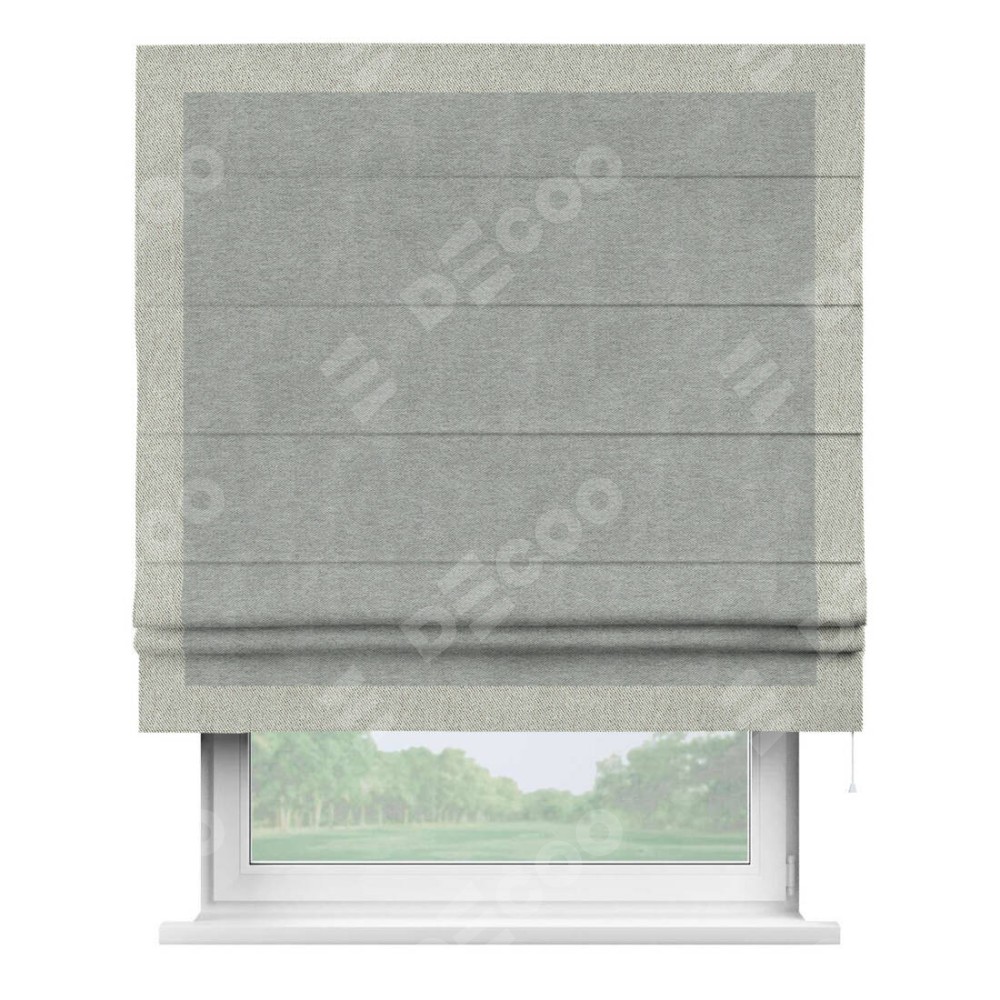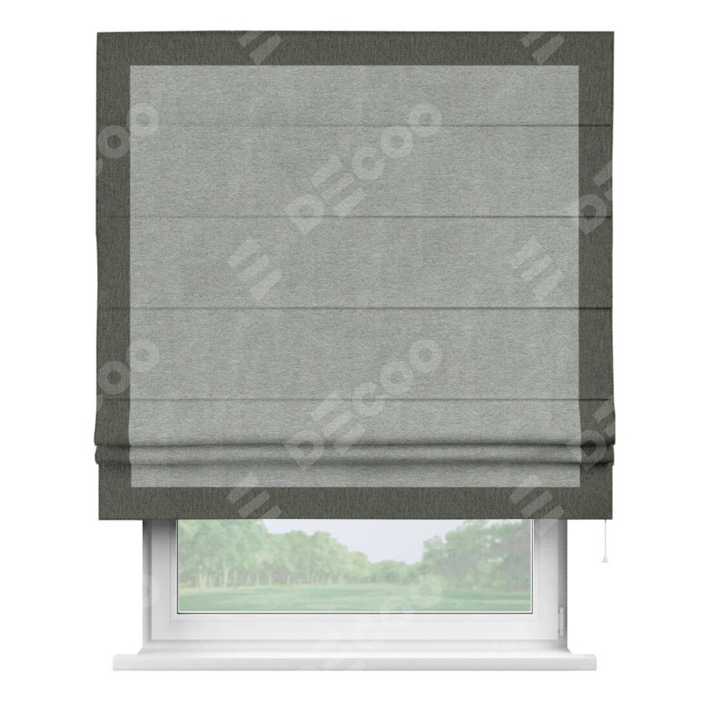 Римская штора «Кортин» с кантом Чесс, для проема, ткань твид блэкаут, светло-серый