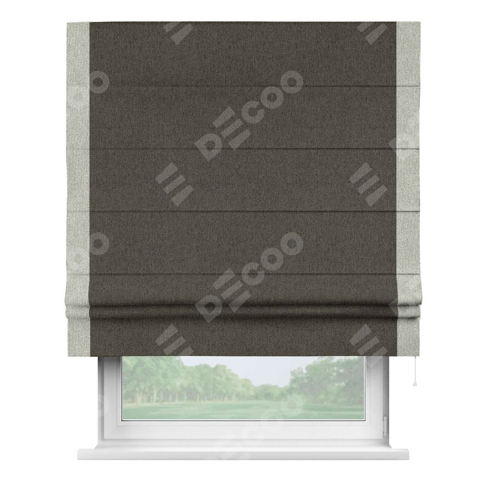 Римская штора «Кортин» с кантом Стрим Дуо, для проема, ткань твид блэкаут, тёмно-коричневый